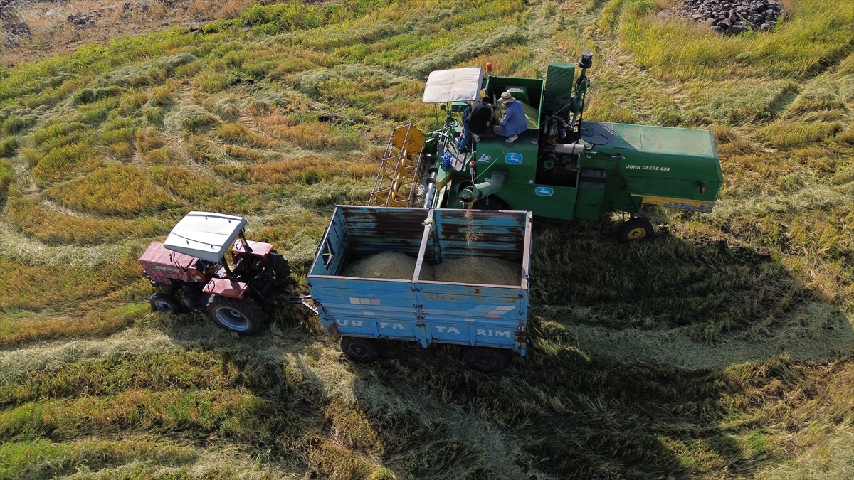 Mayıs ayında çoğunlukla taşlık arazilere ekilen çeltik, eylül ayında düz arazilerde biçerdöverle biçilirken, eğimli arazilerde ise işçiler tarafından orakla toplanıyor.