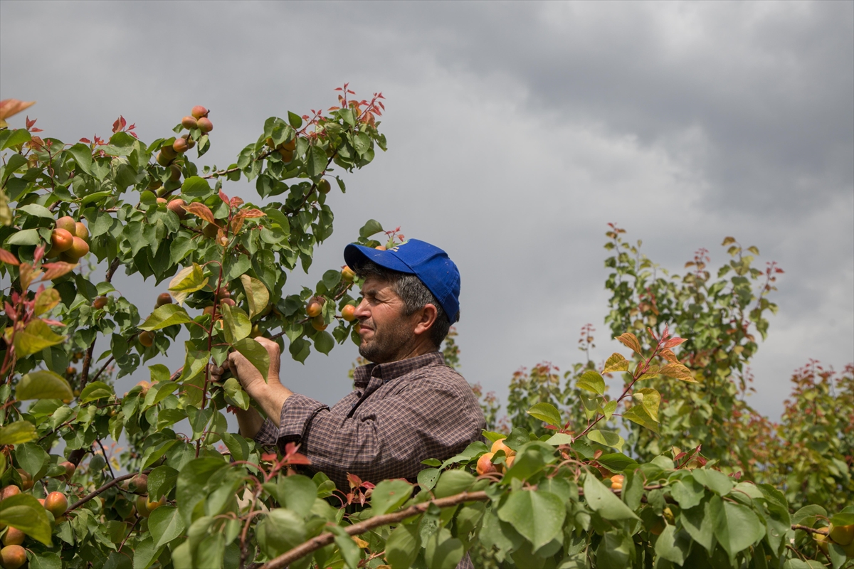 Sahip olduğu iklim özelliğinden dolayı çok sayıda ürünün yetiştiği ilçede, coğrafi işaret tescilli kayısının hasadı sürüyor.