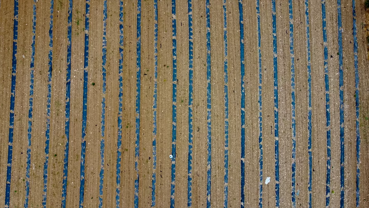 "Birinci ekimde, 'tül altı' dediğimiz, üzerine tül örterek karpuzları dondan, kırağıdan koruyoruz. Önce malç makinesiyle naylon yayıyoruz. Sonra üzerine tel diktiriyoruz. Üzerine tülbent ya da elyaf örtüyoruz. Bunlar birinci ekim. Telini, tülünü aldık, çapasını yaptık. Artık suyla, gübreyle, ilaçla devam edeceğiz. Kendilerini kurtarmış vaziyete geldiler. Sonra diğer iki ekim dönemine geçiyoruz. Kapasiteye göre üç boy karpuz ekiyoruz."
