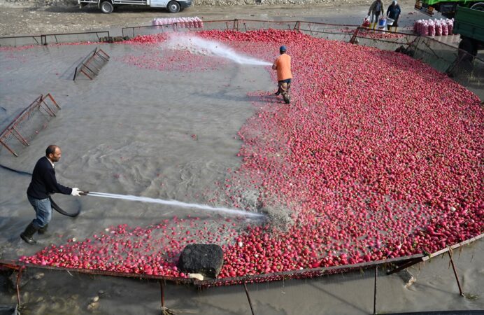 OSMANİYE (AA) – MUZAFFER ÇAĞLIYANER – Osmaniye'de coğrafi işaret tescilli Kadirli turpunda hasada başlayan çiftçiler, tüketicilere ulaştıracakları ürünleri çamurdan arındırmak için Savrun Çayı'nın soğuk suyunda el birliğiyle çalışıyor.