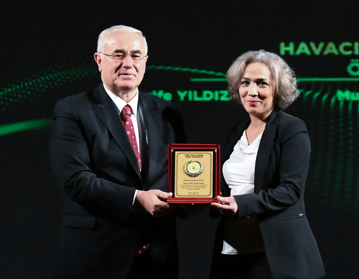 Medya dalında ödüle layık görülen Anadolu Ajansı Başmuhabiri Arife Yıldız Ünal, plaketini Kamu Başdenetçisi Mehmet Akarca'dan aldı.
