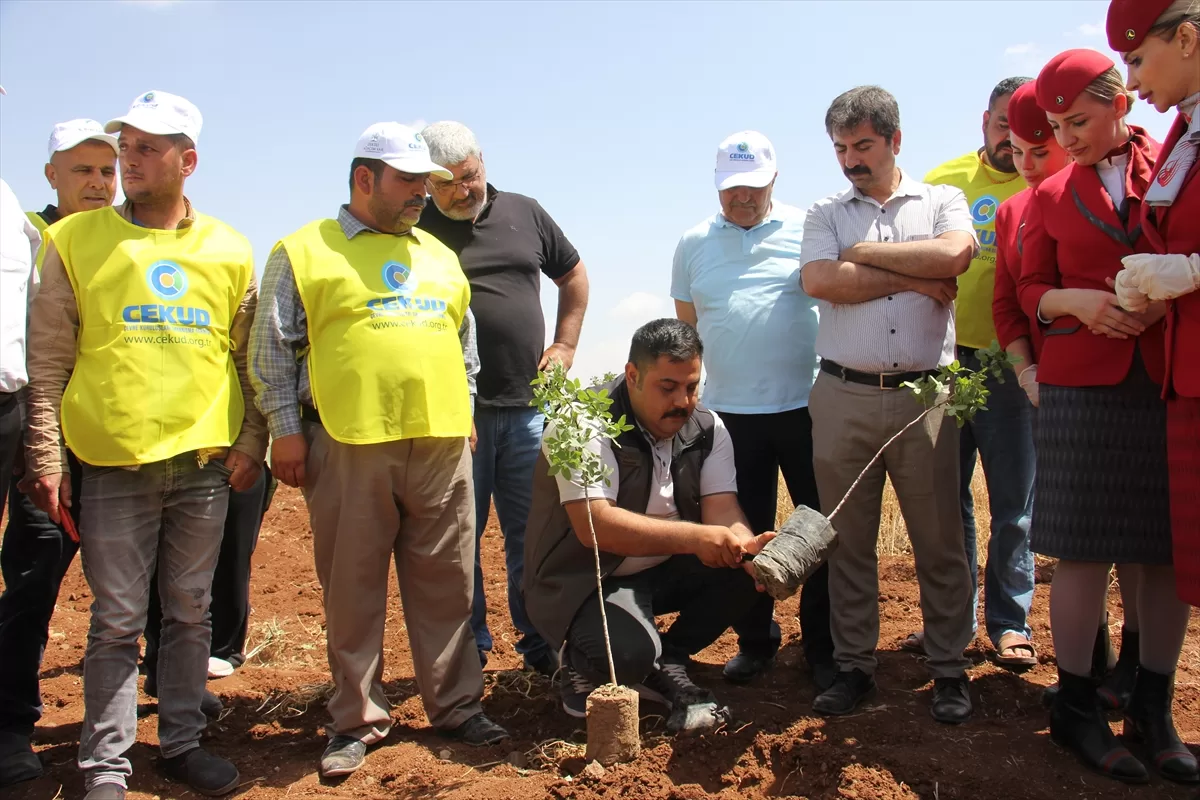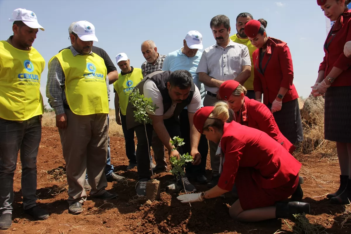 KİLİS (AA) – Kilis'te Çevre Kuruluşları Dayanışma Derneği (ÇEKUD) ile Türk Hava Yolları (THY) arasında imzalanan protokol kapsamında 14 bin Antep fıstığı fidanı toprakla buluşturuldu.
