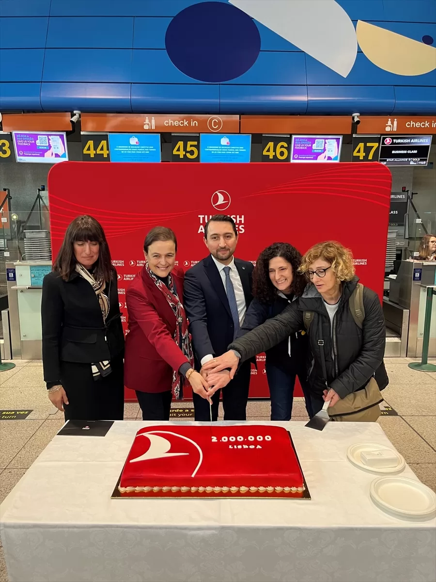 Lizbon-İstanbul hattında 2005'te direkt uçuşlara başlayan THY, şimdiye kadarki uçuşlarda yolcu sayısının 2 milyona ulaşmasını kutladı.