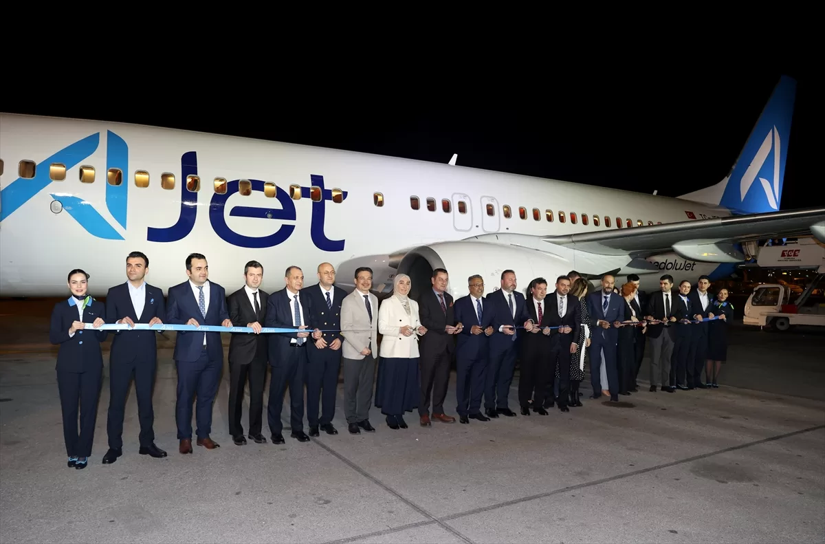 Pasta kesiminin ardından Ankara Esenboğa Havalimanı apronunda bekleyen AJet uçağı önünde kurdele kesildi.