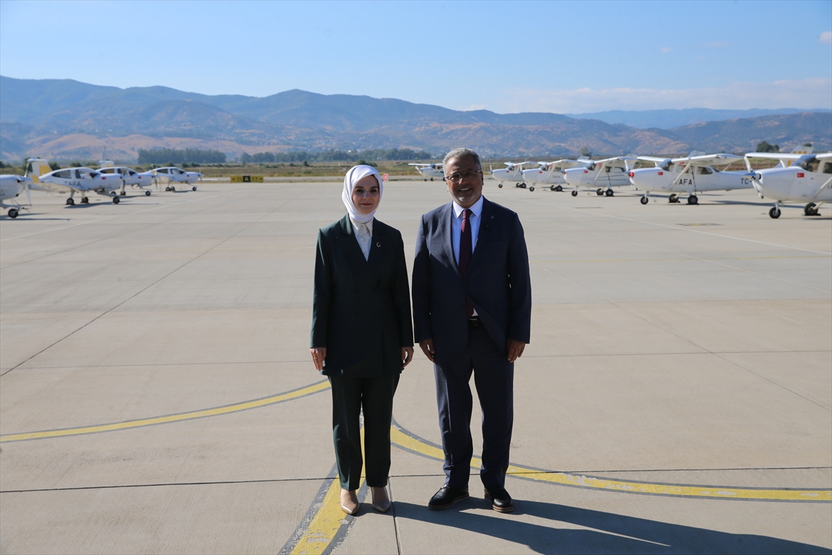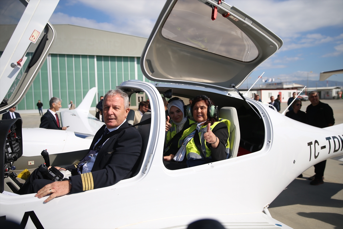 Ardından Bakan Göktaş ile Aydın Büyükşehir Belediye Başkanı Özlem Çerçioğlu eğitim uçağına binerek bir süre havada tur attı.