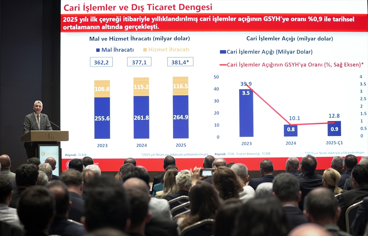 Bolat, Cumhurbaşkanı Recep Tayyip Erdoğan'ın senenin başında 390 milyar dolar mal ve hizmet ihracatı hedefi koyduğunu anımsatarak, "Bunun için de hizmetin payı 121 milyar dolar olacak, bunu da başaracağız. Ancak bunları konuşurken kafamızı da kuma gömmemeliyiz. Dünyada, bölgemizde, etrafımızda olan bitenleri hep birlikte görüyoruz ve anlık yaşıyoruz. İsrail'in önce Gazze'de, Batı Şeria'da, Lübnan'daki saldırgan tutumu ve on binlerce kişiyi katletmesi, soykırım uygulaması ve giderek pervasızlaşması, daha sonra İran'a 13 Haziran günü saldırması, yaklaşık on günlük savaş halinden sonra bugün ateşkes ilan edildi. İki taraf da ateşkesi kabul ettiğini açıkladı. Sabah uyandığımızda sevindirici bir haber olarak karşılaştık. Başta altın ve petrol fiyatlarında ciddi bir geriye düşüş oldu." değerlendirmesinde bulundu.
