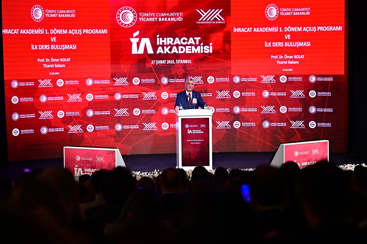 "Ocak ayı başında ihracat eylem planımızı açıkladık, 77 maddeden oluşan. Yine Türk Ticaret Bankamız faaliyete geçti. Türk Ticaret Bankası, Eximbank'ın yanında ihracatçılarımızı desteklemek için ikinci büyük finansman kanalımız oldu. İhracat Akademimiz de dış ticaretteki bütün süreçlerin işleneceği konulardan oluşan programlarıyla çok önemli, faydalı, hayırlı bir teşebbüs olarak faaliyete bugün başlamaktadır. Burada pazar araştırması yöntemlerinden mevzuata, uluslararası pazarlama ve markalaşmadan taşımacılık, gümrükleme, lojistik ve ödeme şekillerine varıncaya kadar e-ticaret, e-ihracatın da işleneceği, devlet desteklerinin, dahilde işleme rejiminin, serbest bölgelerin ve transit ticaretin konular itibarıyla işleneceği çok zengin, güçlü bir program."
