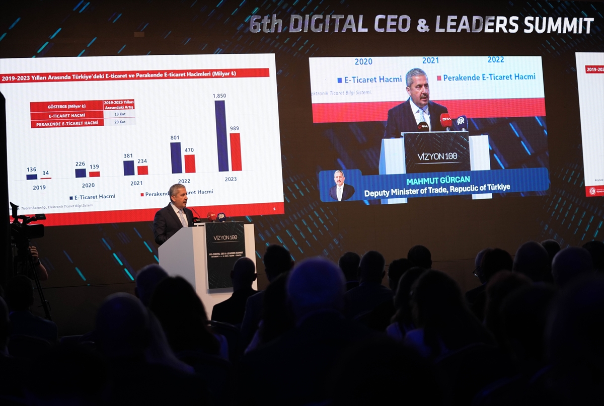 "Dolayısıyla, yalnızca değişime ayak uydurmakla kalmayıp, değişime yön veren bir ülke olmayı, yatırım, üretim, ihracat zincirinde sürdürülebilir üretimi tesis etmeyi ve katma değerli ihracatı artırmayı hedefliyoruz. Bu kapsamda, dijitalleşme alanında sunmuş olduğumuz destekler ile işletmelerin bu dönüşümü hızlandırmalarına yardımcı olmayı amaçlıyoruz. E-ihracat destekleri ile firmalarımızın yurt dışı pazaryerlerinde tanıtım ve sipariş karşılama hizmetlerine yönelik önemli destekler hayata geçirilmiştir. 2023 yılından itibaren başvuruları alınan destek mekanizması sayesinde firmalarımızın dijitalleşmesini ve e-ihracat operasyonlarını kolaylaştırmayı amaçlıyoruz. E-ihracatın toplam ihracatımızdaki payı 2022'de yüzde 1,5, 2023'te de yüzde 2,1 iken, bu yılın ilk 8 ayında yüzde 2,7'ye yükselmiştir. Yıl sonu hedefimiz ise yüzde 3 seviyesine ulaşmak ve 8 milyar dolar e-ihracatı başarmaktır. Temel hedefimiz, bu oranı 2028 yılında yüzde 10'a yükseltmektir."