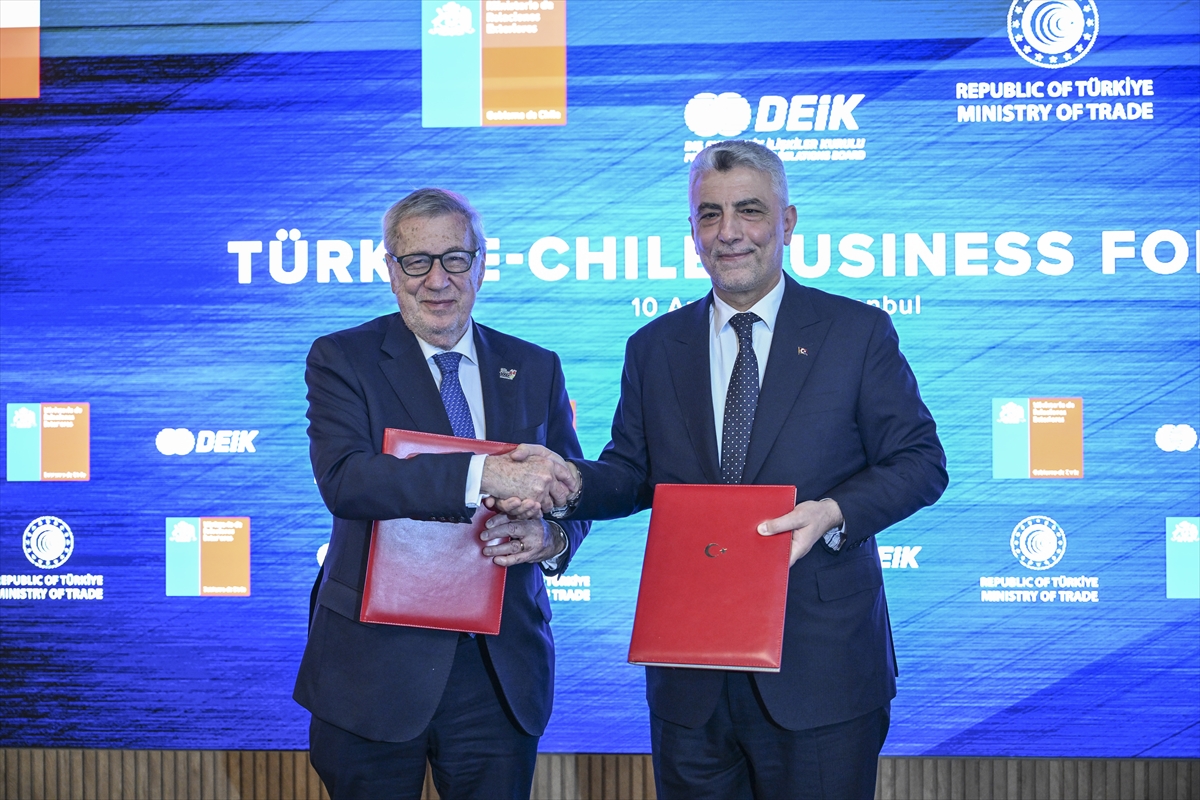 Türkiye-Şili İş Forumu Toplantısı, Ticaret Bakanı Ömer Bolat, Şili Dışişleri Bakanı Alberto van Klaveren ve Dış Ekonomik İlişkiler Kurulu (DEİK) Başkanı Nail Olpak'ın katılımıyla DEİK merkezinde gerçekleştirildi. Etkinlikte, Ömer Bolat ve Alberto van Klaveren arasında mutabakat zaptı imzalandı.