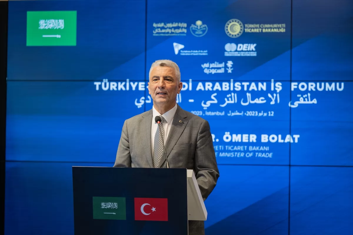 İSTANBUL (AA) – Ticaret Bakanı Ömer Bolat, Türkiye ile Suudi Arabistan arasındaki dış ticaret hacminin bu yılın ilk yarısında 3,4 milyar dolara ulaştığını belirterek, "Hedefimiz, karşılıklı ticareti kısa vadede 10 milyar dolar, uzun vadede ise 30 milyar dolar seviyesine çıkarmaktır." dedi.