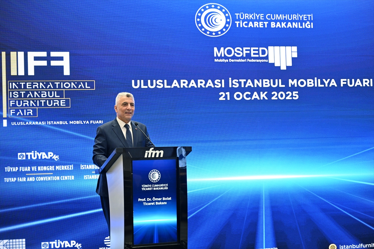 İSTANBUL (AA) – Ticaret Bakanı Ömer Bolat, Türk mobilya sektörünün ihracata açıldıktan sonra dünya çapında bir şöhret yakaladığını belirterek, "Türkiye'nin toplam mal ihracatının yüzde 2'sine ulaşan mobilya sektörü, dünya mobilya ihracatının da yüzde 2'sine ulaştı ve dünyada 7'nci sıraya yükseldi, daha yukarılara hep birlikte tırmanacağız." dedi.