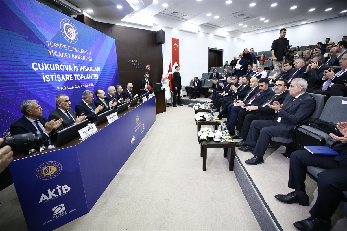 Bakan Muş, kentteki temasları kapsamında Adana Sanayi Odası'nda düzenlenen istişare toplantısında Çukurova'daki iş insanlarıyla bir araya geldi.