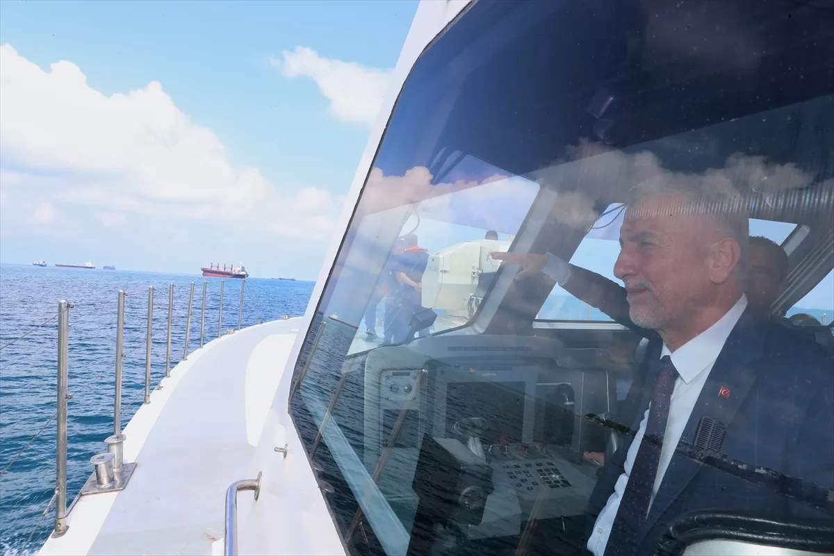 Limanda Sahil Güvenlik Komutanlığına bağlı feribota binen Bolat, denize açılarak limandaki çalışmaları inceledi.