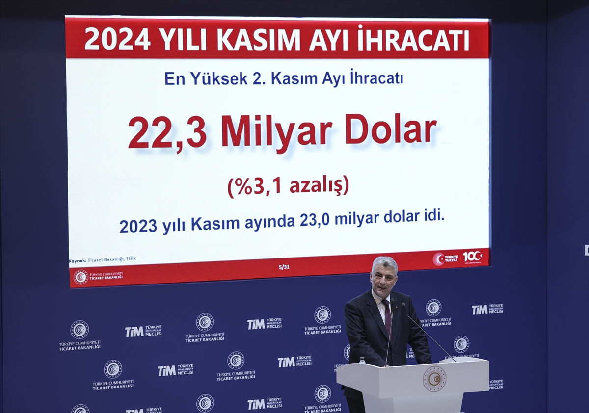 Bolat, kasım ayı dış ticaret verilerine ilişkin de bilgi vererek, "Kasımda ihracatımız geçen yılın aynı ayına göre yüzde 3,1 oranında sınırlı bir azalışla 22,3 milyar dolar olarak gerçekleşmiştir. Geçen yıl 23 milyar dolarlık yüksek baz etkisi olan ihracat rakamına göre sınırlı bir azalış söz konusudur. Genel ve 11 aylık toplamda mal ihracatımızdaki artış süreci devam etmektedir." diye konuştu.