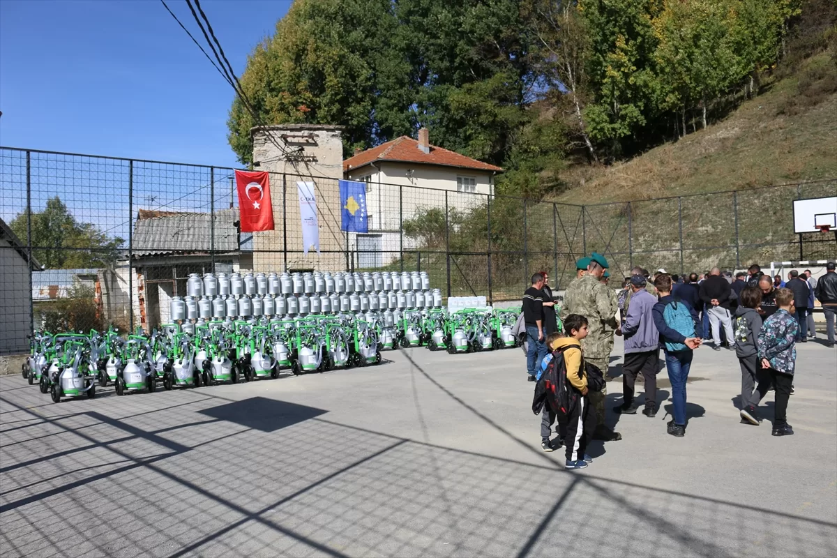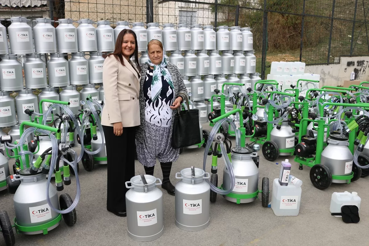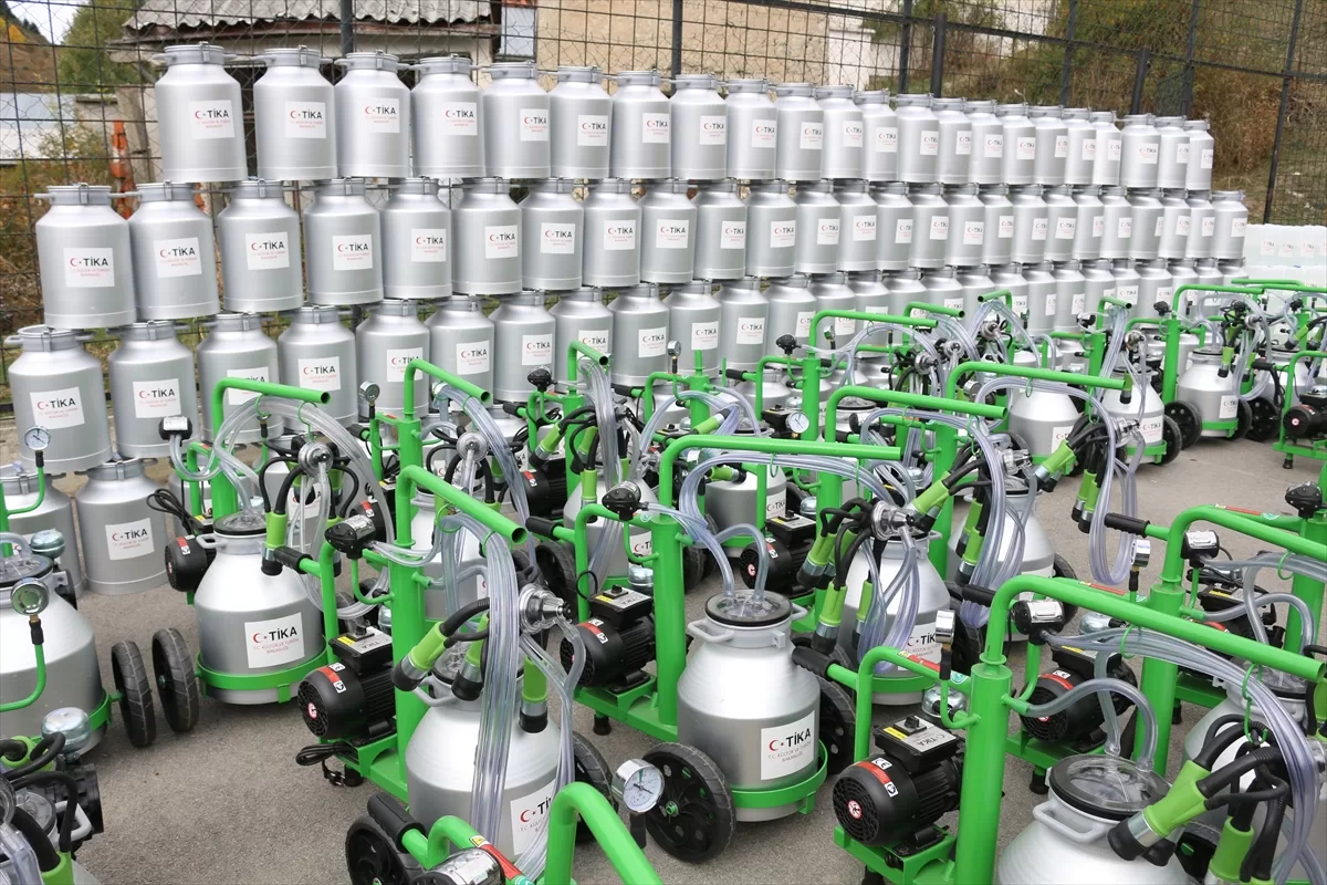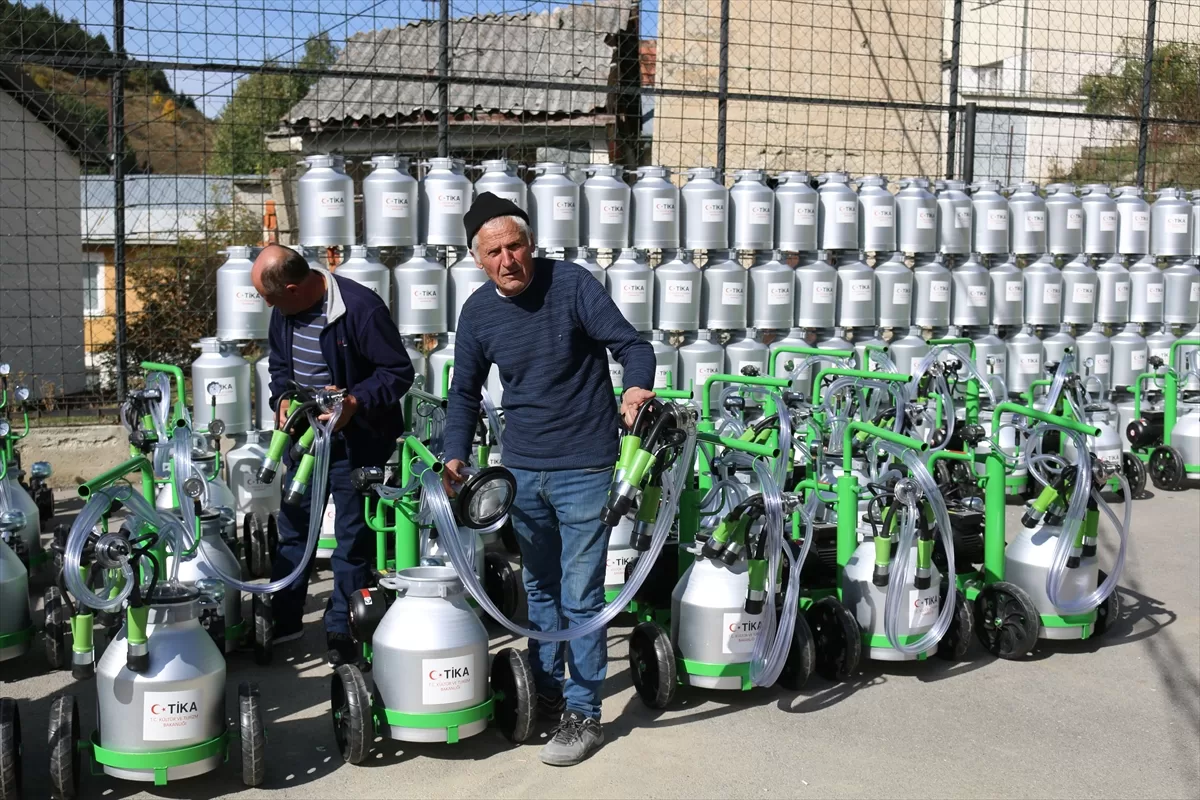 TİKA Koordinatörü Aslan, AA muhabirine, proje kapsamında Dragaş'ta süt üreten 50 çiftçiye süt sağma makinası, süt taşıma bidonu ve hijyenik malzeme seti dağıtımı gerçekleştirdiklerini söyledi.