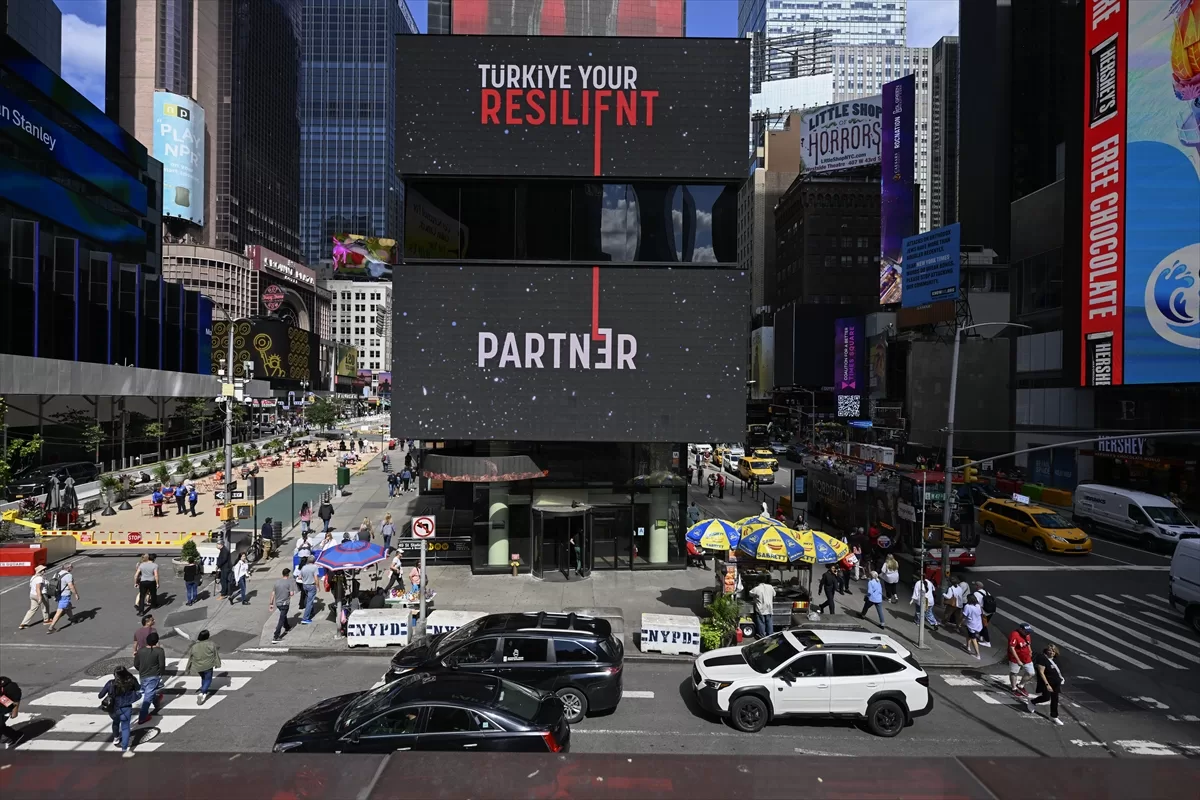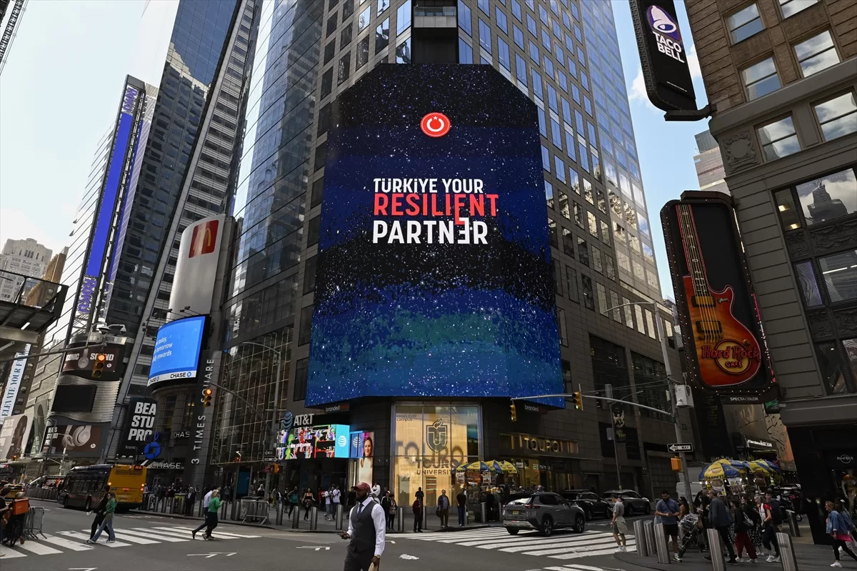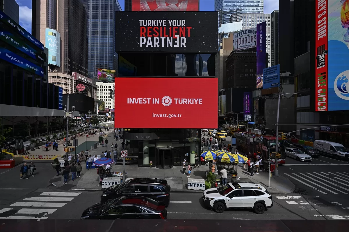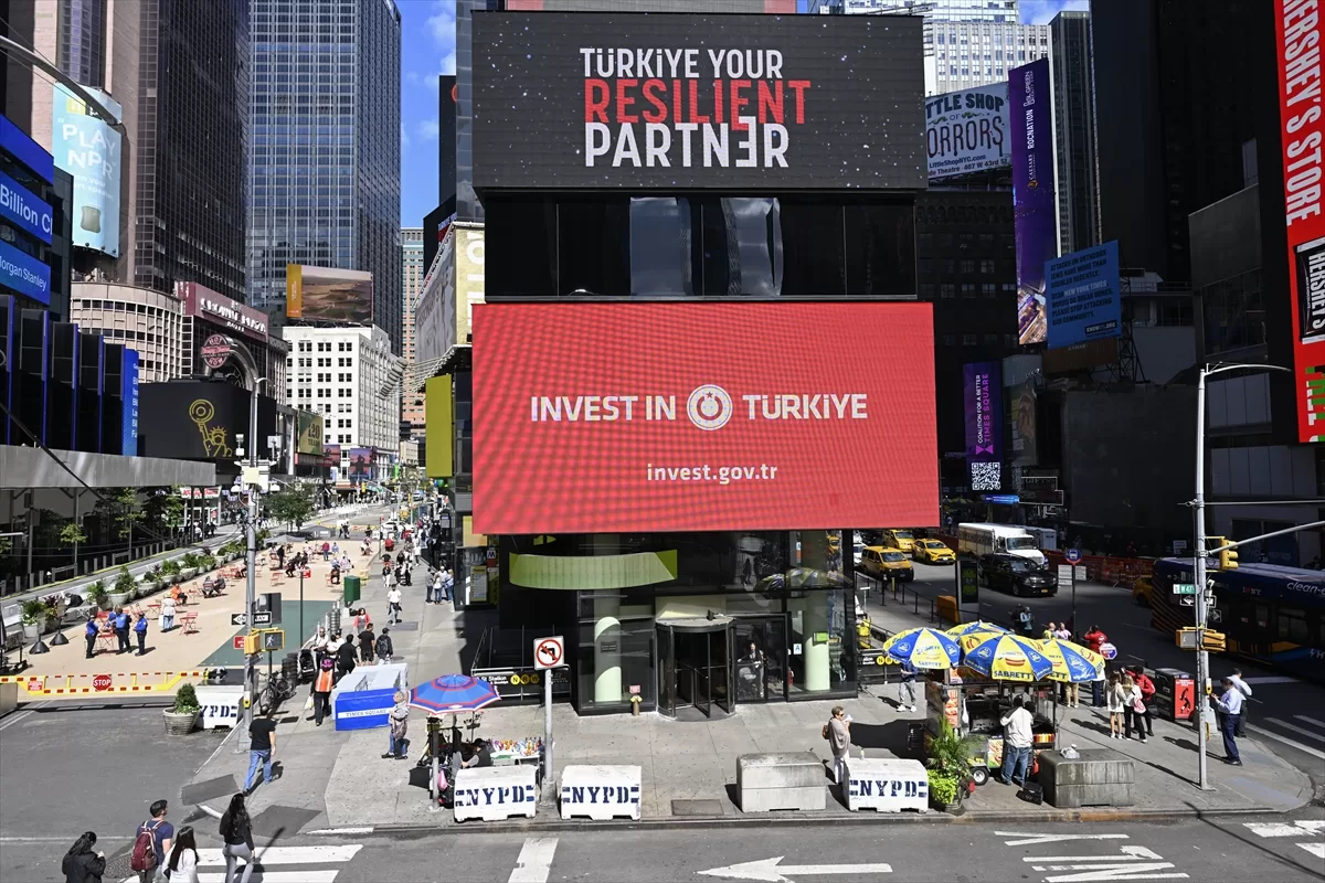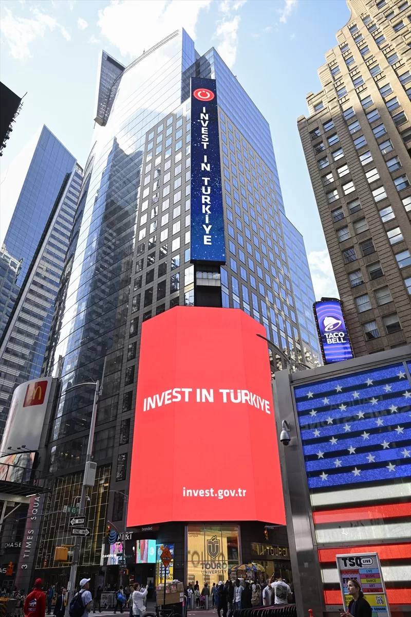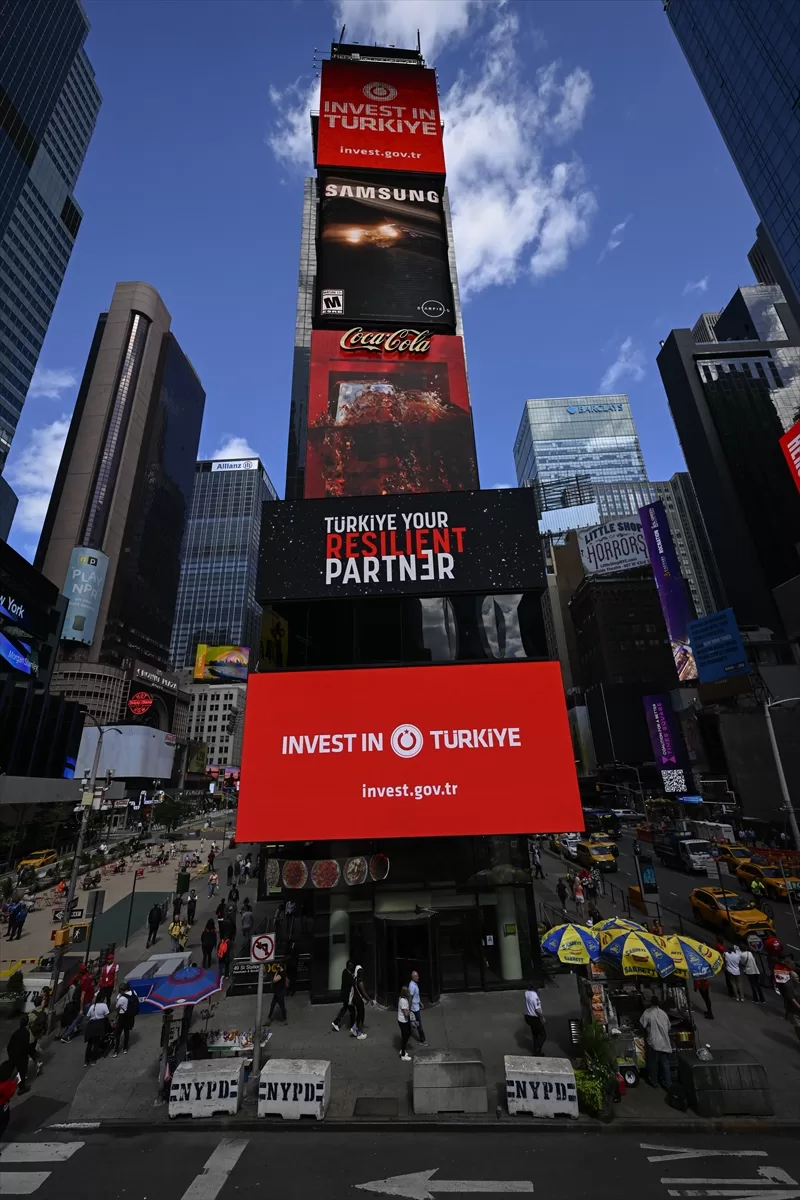 Bu kapsamda, Cumhurbaşkanlığı Yatırım Ofisi'nin "Türkiye: Dayanıklı Yatırım Ortağınız" ve "Invest in Türkiye" mesajları, New York'un dünyaca ünlü Times Meydanı'ndaki dijital panolarda yayımlandı.