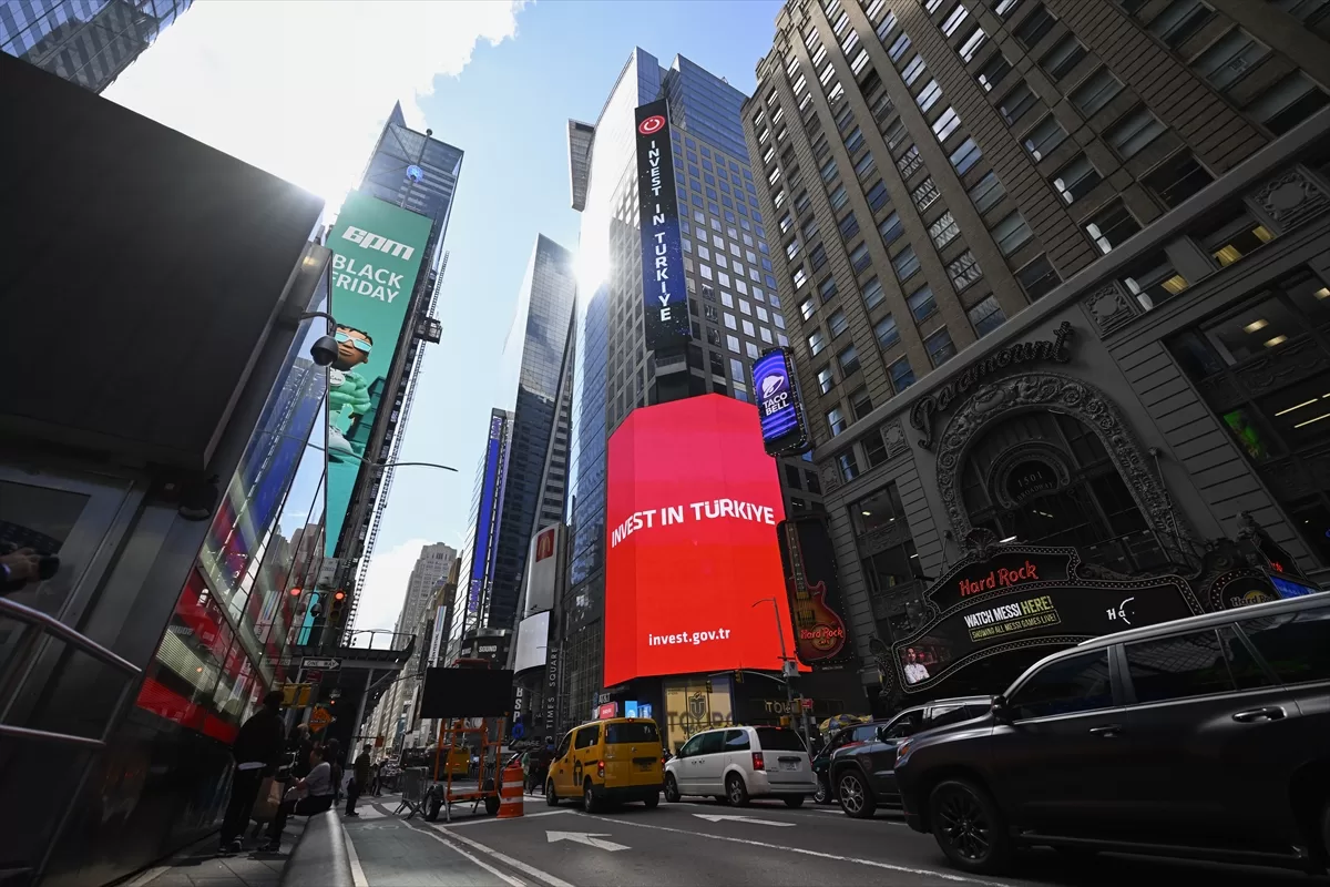 NEW YORK (AA) – Cumhurbaşkanlığı Yatırım Ofisi, New York'taki Times Meydanı'ndaki dijital panolarda "Invest in Türkiye" mesajını yayımladı.