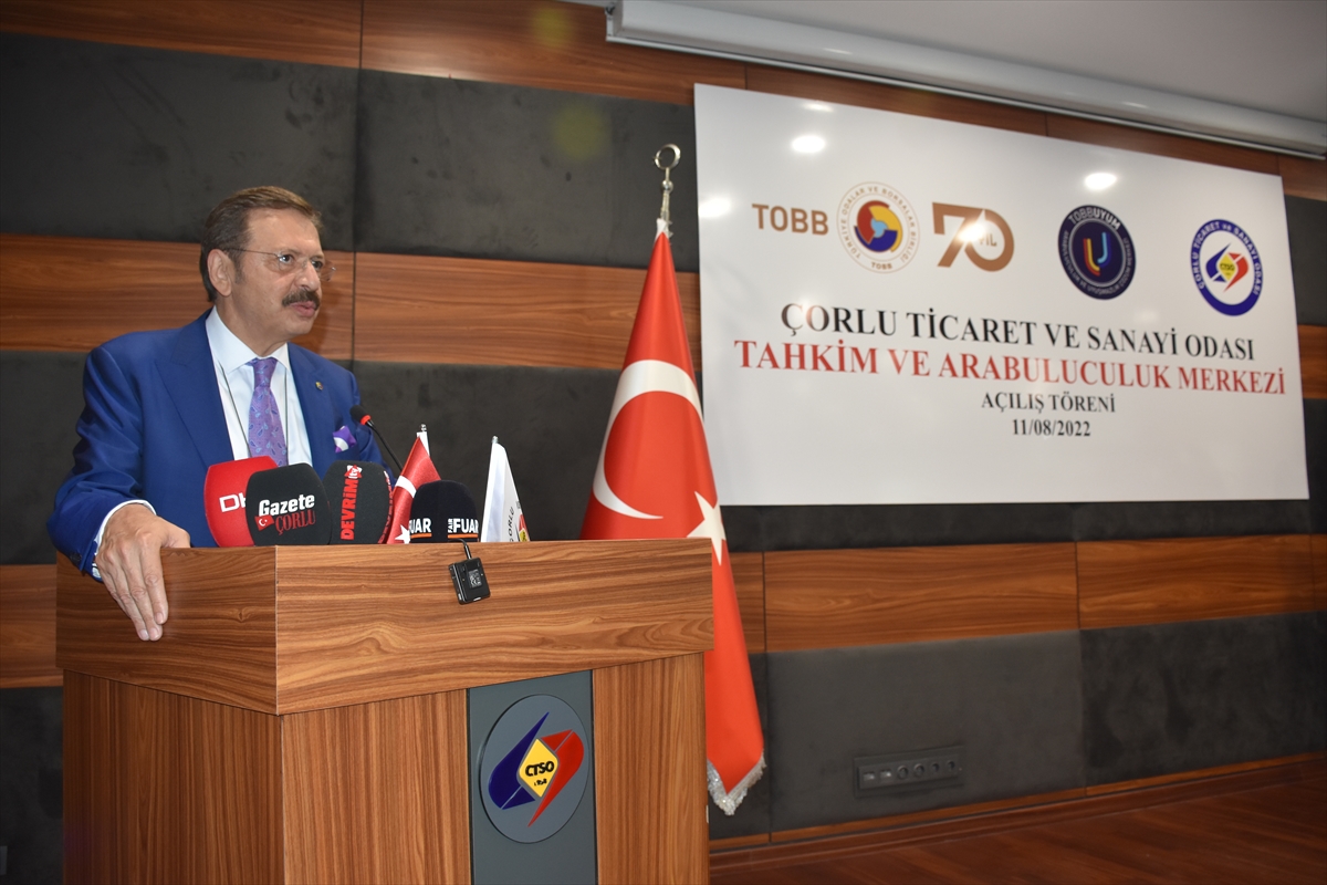 Hisarcıklıoğlu, Çorlu TSO Başkanı İzzet Volkan'ı ziyaretinin ardından Tahkim ve Arabuluculuk Merkezi'nin açılışında yaptığı konuşmada, sorun yaşayan iş insanlarının merkezi kullanması gerektiğini söyledi.