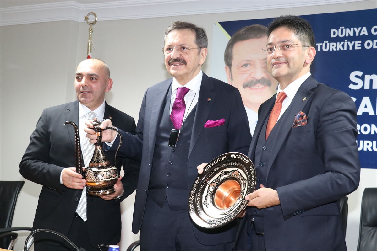 Palandöken Ekonomi Forumu için kente gelen Hisarcıklıoğlu, Erzurum Ticaret Borsası yeni hizmet binasında iş dünyası temsilcileriyle bir araya geldi.