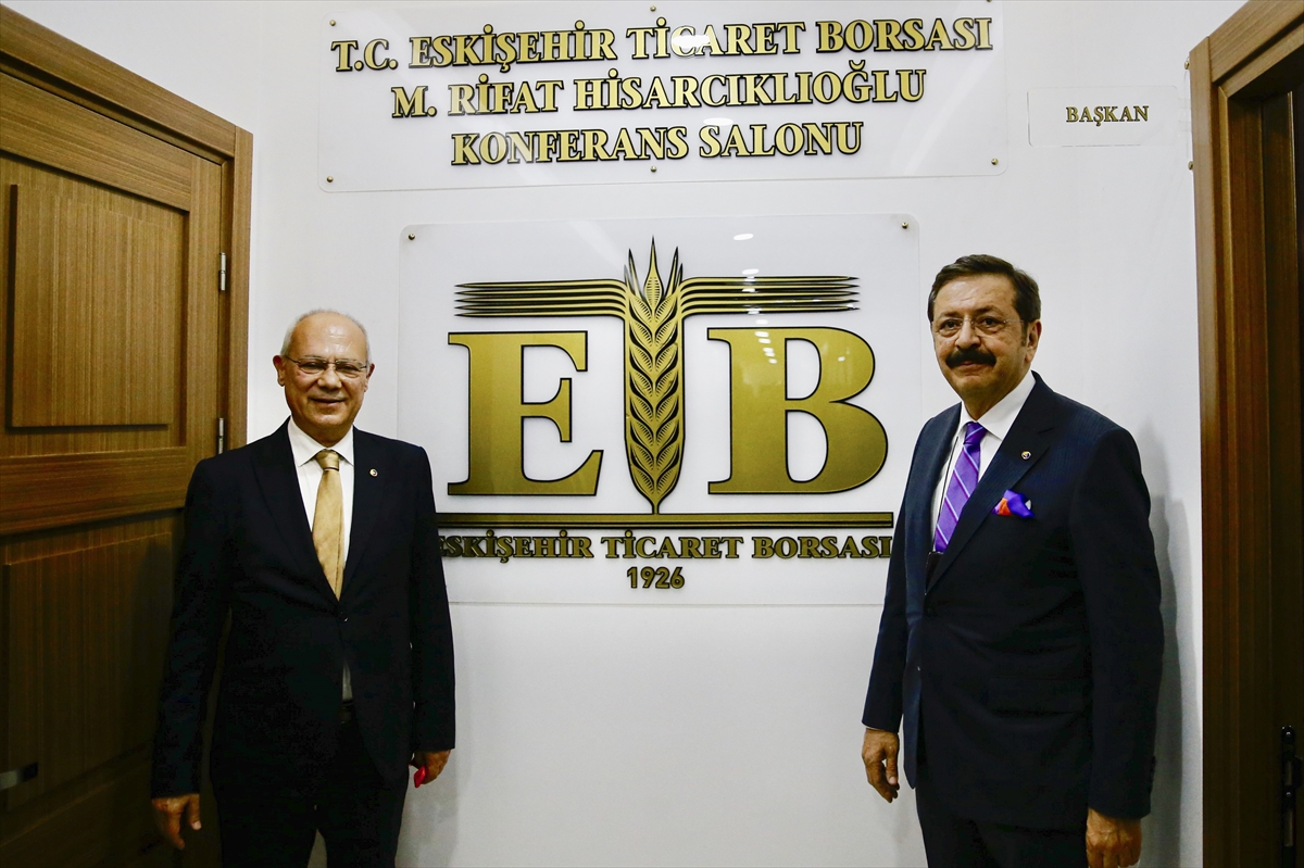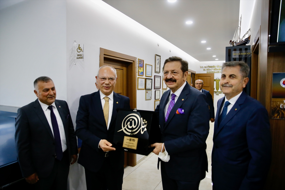 Konuşmanın ardından Hisarcıklıoğlu ve Eskişehir Ticaret Borsası Başkanı Ömer Zeydan, bazı üyelere plaket verdi.