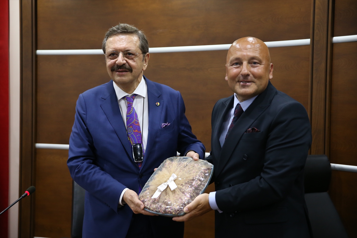Konuşmanın ardından Ordu Ticaret Borsası Başkanı Ziver Kahraman tarafından Hisarcıklıoğlu'na çeşitli hediyeler takdim edildi.