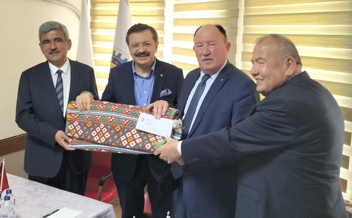 Konuşmaların ardından Fişekci, Hisarcıklıoğlu'na çeşitli hediyeler sundu.