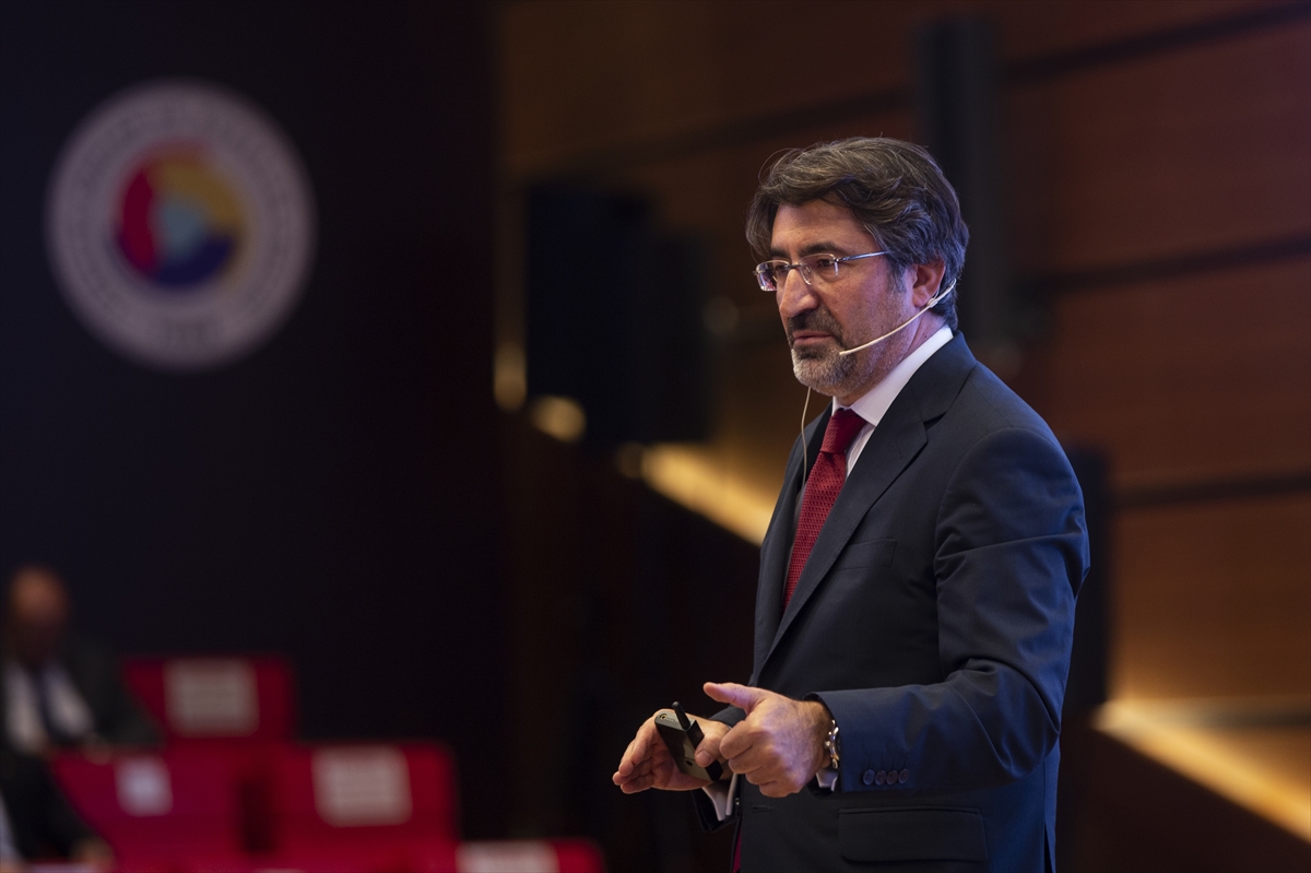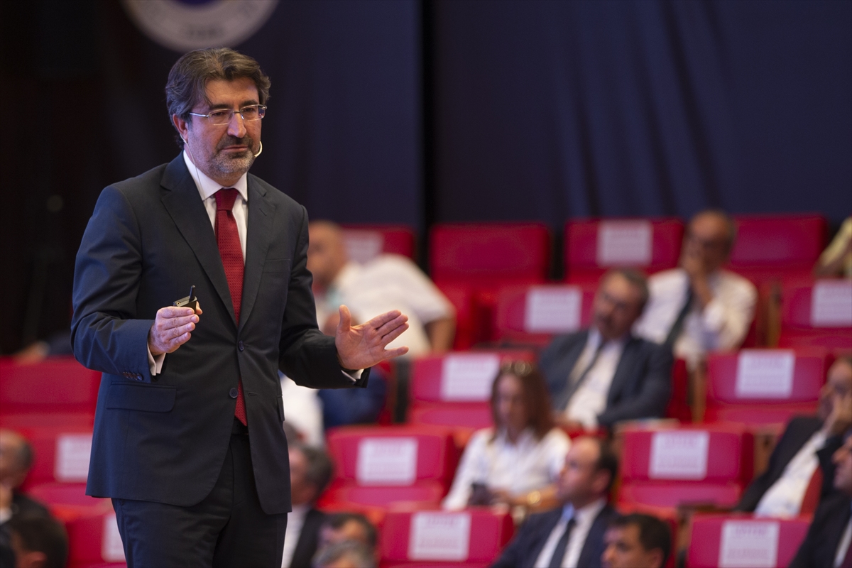 "Bizim bilanço yapılarımız sağlam ve size önümüzdeki süreç itibarıyla destek verebilecek durumdayız. Bütün bankacılık sektörü adına şunu rahatlıkla söyleyebilirim, 'Sizin kaybettiğiniz benim kazandığım bir ortam yok. Siz kazandıkça ben kazanabilirim, sizin bilançolarınız iyi oldukça benim bilançom iyi olabilir.' Reel sektör ve finans sektörü bunlar iş birliği içinde olmak ve beraber hareket etmek durumunda. Ekonomi yönetimi, reel sektör ve finans sektörü, biz birbirimizi tamamlamak durumundayız. Böyle hareket ediyoruz, önümüzdeki süreçte de böyle hareket etmeye devam edeceğiz. Esas olan ülke bilançosunun sağlıklı işlemesi, ülke bilançosu sağlıklı olduğu müddetçe hepimizin bilançosu doğru işlemeye devam eder. Çevre ve iklimi dikkate alarak üreten, yatırım yapan, istihdam yaratan her bir müşterimizin yanında olmaya devam edeceğiz. Bizim ülkemiz büyümek zorunda, biz de o büyümeyi finanse edebilecek güç, kabiliyet, ödenek ve kaynağa sahibiz. Bundan hiçbir tereddüdünüz olmasın."