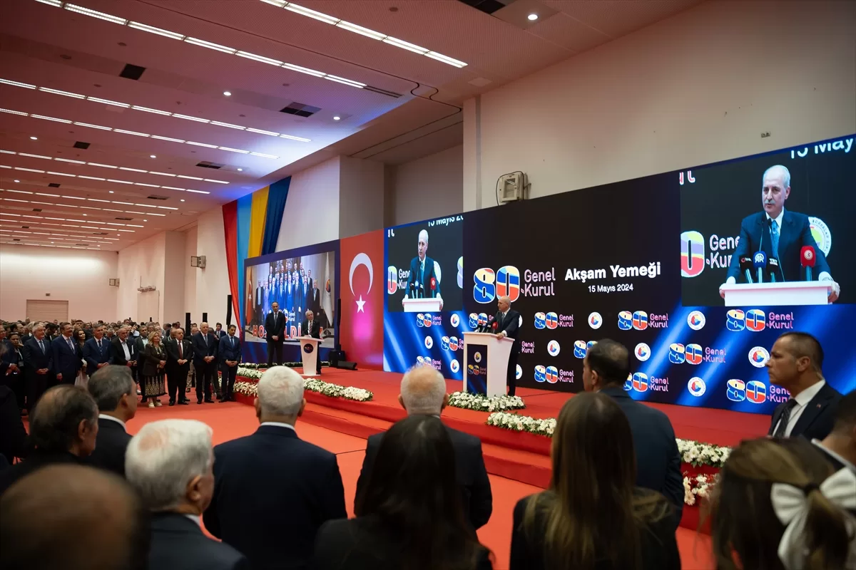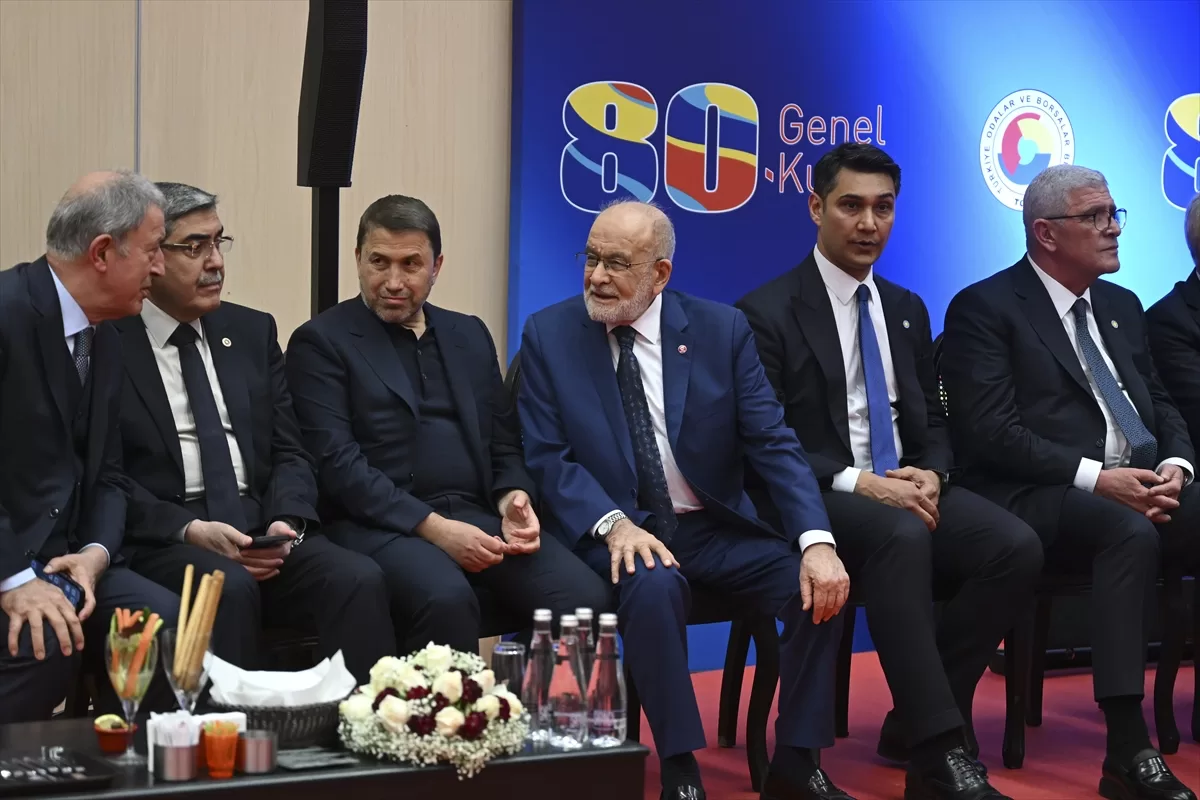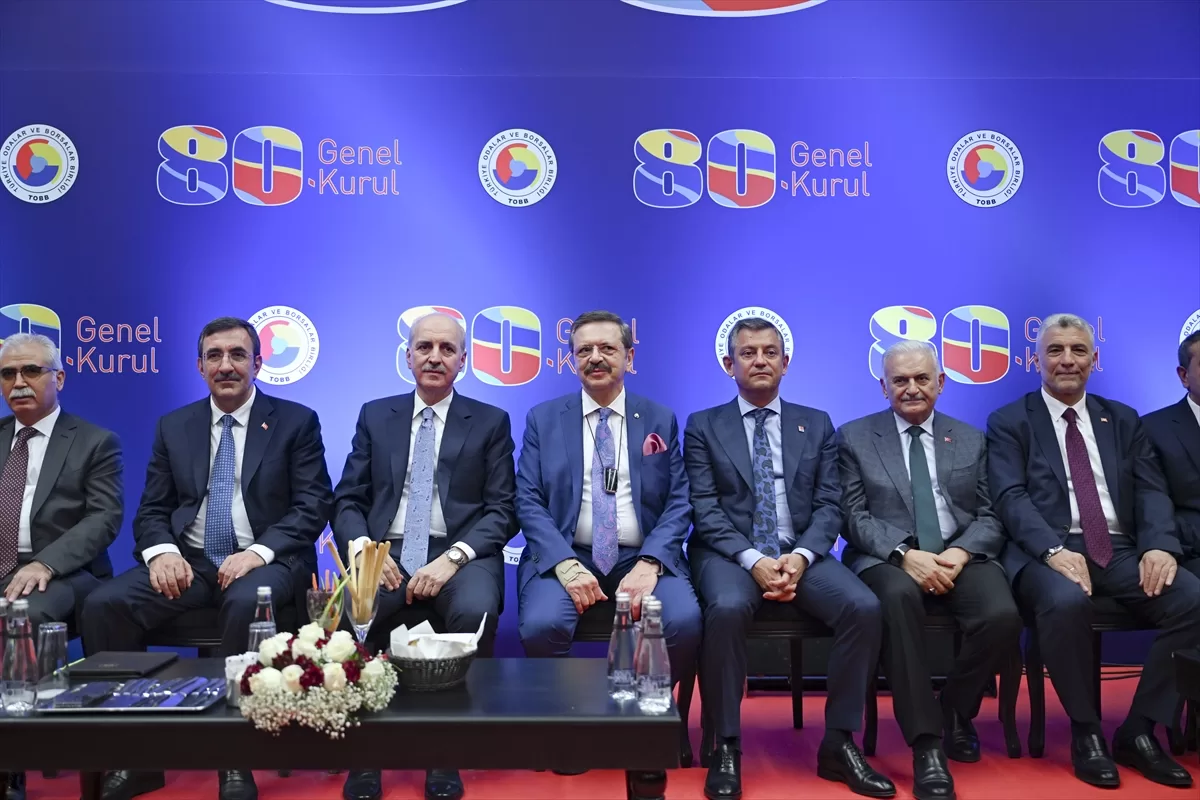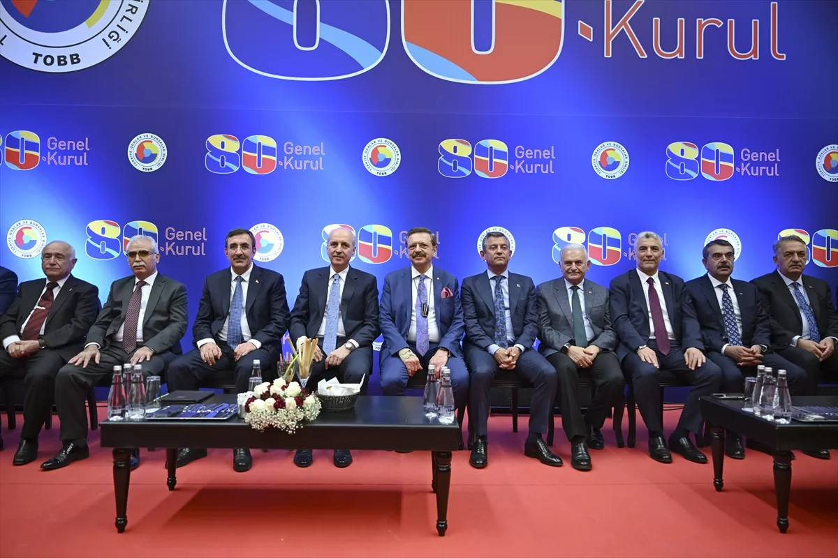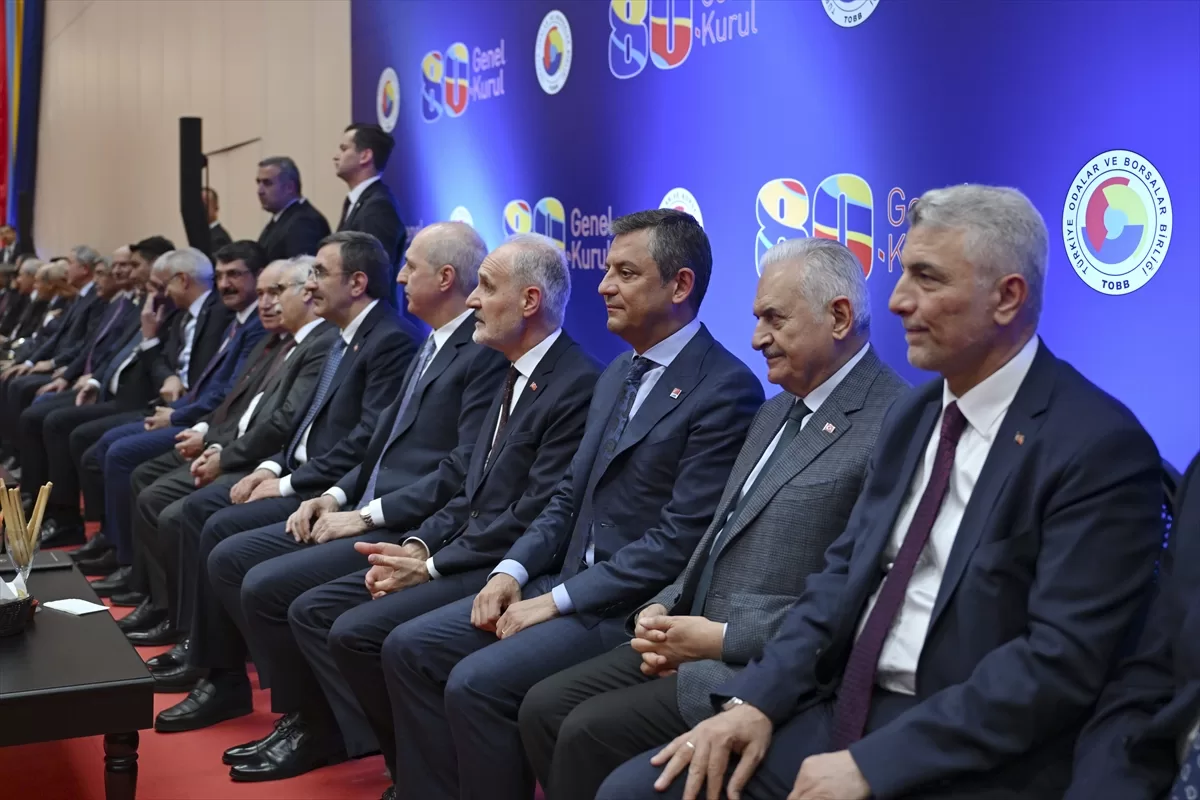 TBMM Başkanı Numan Kurtulmuş, Cumhurbaşkanı Yardımcısı Cevdet Yılmaz ve CHP Genel Başkanı Özgür Özel'in konuşma yaptığı TOBB'un 80. Genel Kurulu Resepsiyonu'na, Milli Eğitim Bakanı Yusuf Tekin, Ticaret Bakanı Ömer Bolat, Ulaştırma ve Altyapı Bakanı Abdülkadir Uraloğlu, İYİ Parti Genel Başkanı Müsavat Dervişoğlu, Saadet Partisi Genel Başkanı Temel Karamollaoğlu'nun yanında çok sayıda üst düzey yargı mensubu, milletvekili, STK, oda ve borsa başkanı da katıldı.