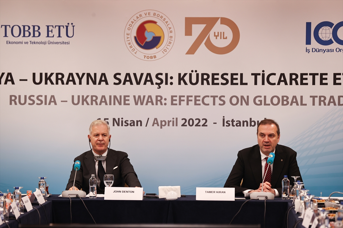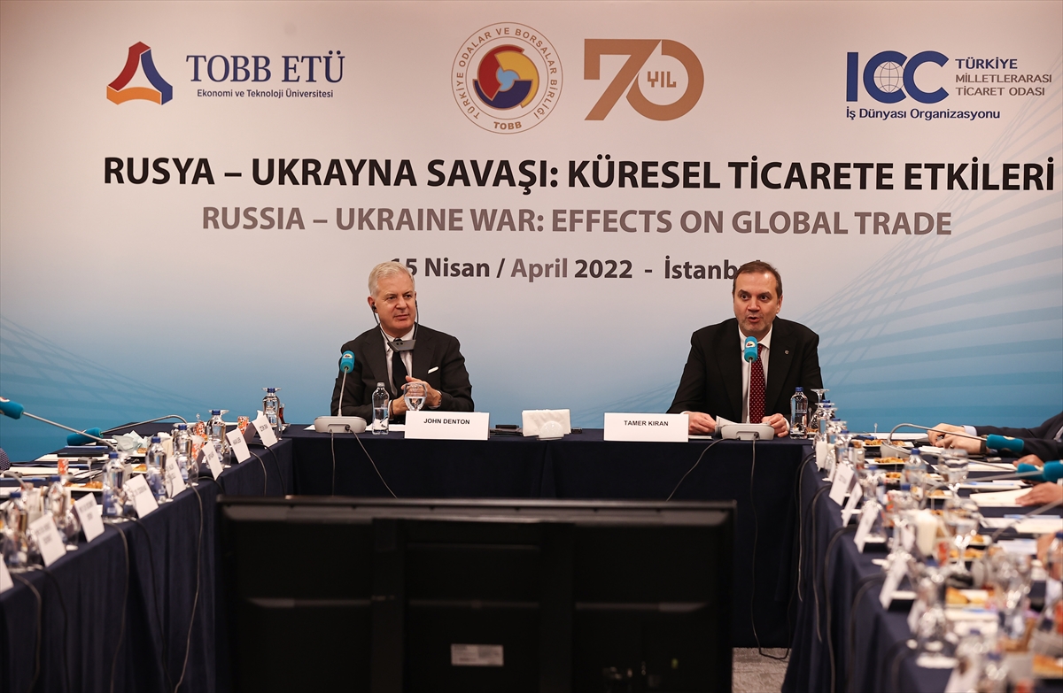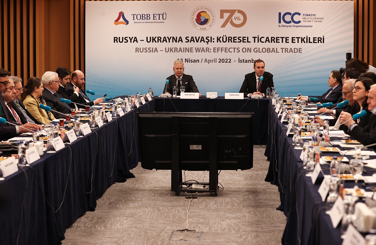 Türkiye Odalar ve Borsalar Birliği (TOBB), Milletlerarası Ticaret Odası (ICC) Türkiye Milli Komitesi ve TOBB Ekonomi ve Teknoloji Üniversitesi (TOBB-ETÜ) iş birliğinde "Rusya-Ukrayna Savaşı: Küresel Ticarete Etkileri" konulu yuvarlak masa toplantısı TOBB İstanbul Hizmet Binası'nda gerçekleştirildi.