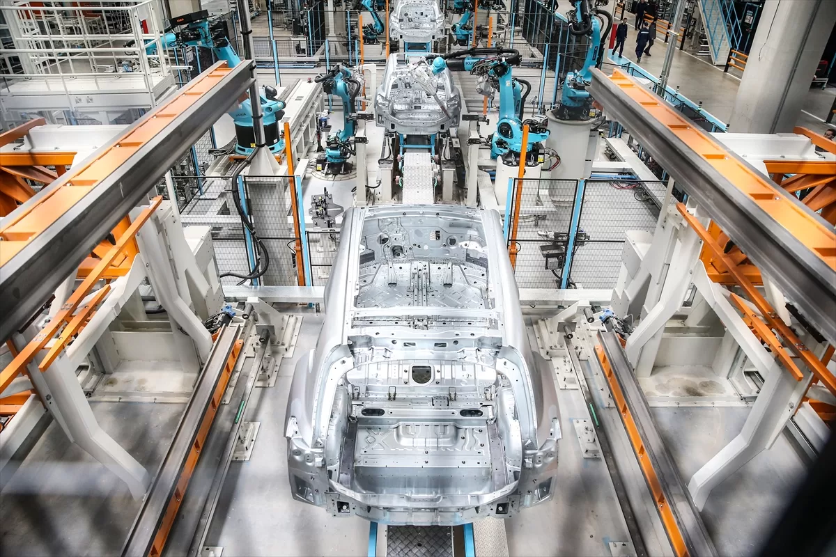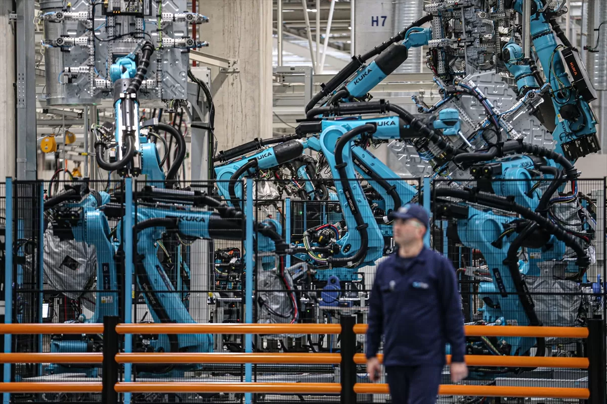 İlk olarak tesisteki gövde bölümünde bilgilendirme yapan Karakaş, "Şu an bulunduğumuz birim, bizim gövde birimimiz. Üretim açısından baktığınızda gövde birimimiz var. Buradan çıkan araçların girdiği boyahane birimimiz var. Oradan da çıkıp montaj birimine gönderiyoruz araçları. Şu an içinde bulunduğumuz gövde birimimiz, 50 bin metrekare alan üzerine kurulmuş olan, içerisinde 209 robotun kullanıldığı ve robot kullanım oranının yüzde 90 seviyesinde olduğu bir birim.