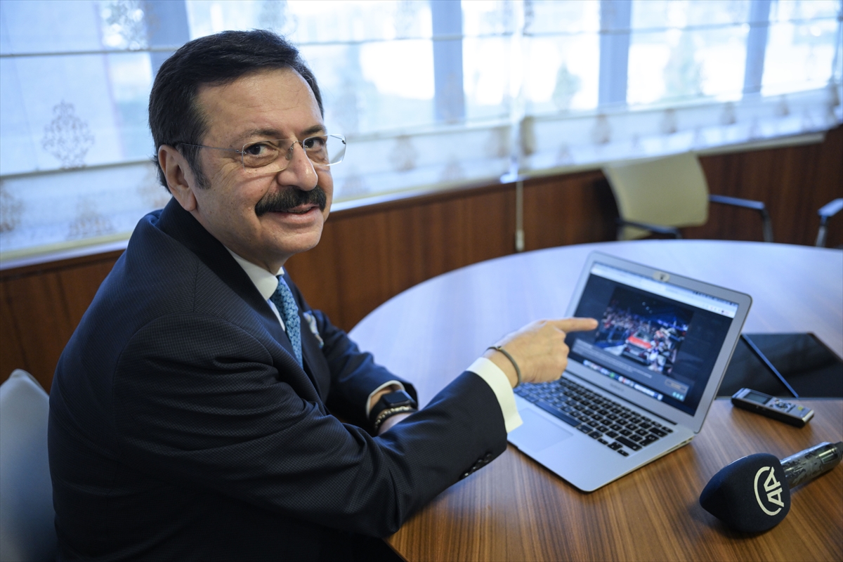 Hisarcıklıoğlu, TOBB İkiz Kuleler'de AA foto muhabirlerinin yurt içinde ve dışında çektiği, "haber", "çevre-yaşam" ve "spor" kategorilerindeki fotoğrafları inceledi.