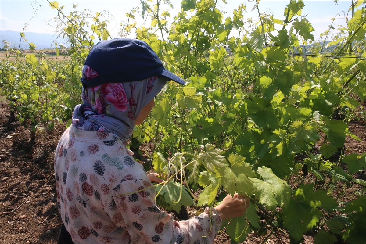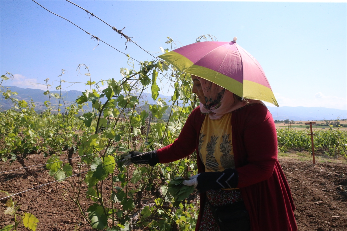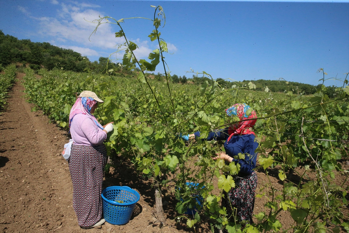 İşçilerden Nahide Aslan da 10 yıldır yaprak topladığını vurgulayarak, "Sabah saat 05.00 gibi başlıyoruz yaprak toplamaya, 12.00'de bırakıyoruz işi. 35 kadın bağda yaprak topluyoruz, yeri geliyor 40 kişi oluyoruz." diye konuştu.