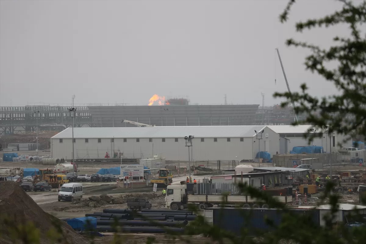 Öte yandan, görüntülerde karaya ulaştırılan doğal gazın Filyos Doğalgaz İşleme Tesisi'nde bulunan yakma ünitesindeki dronla çekilmiş test işlemlerine de yer verildi.