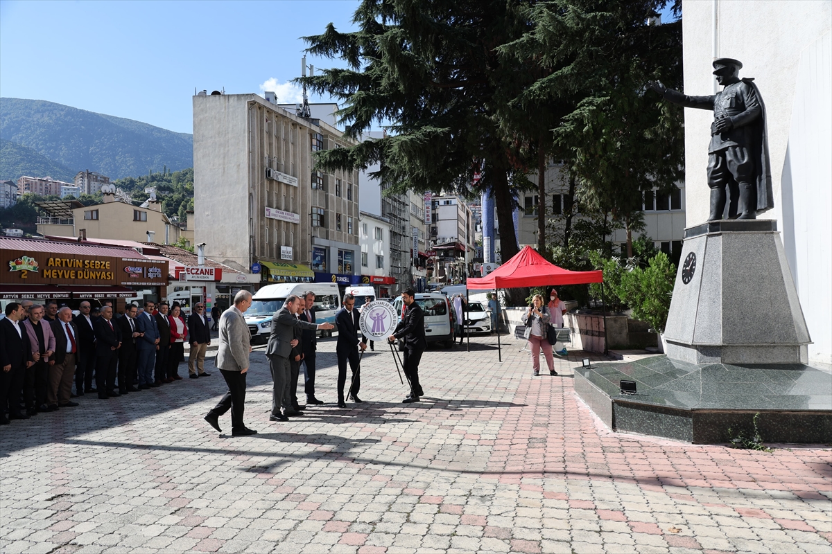 Artvin Valiliği önündeki tören, Ticaret İl Müdürü Abdullah Yıldırım, Artvin Ticaret ve Sanayi Odası Yönetim Kurulu Başkanı Seçkin Kurt ve Artvin Esnaf ve Sanatkarlar Odaları Birliği Başkanı Şeref Öngüner'in Atatürk Anıtı'na çelenk sunmasıyla başladı.