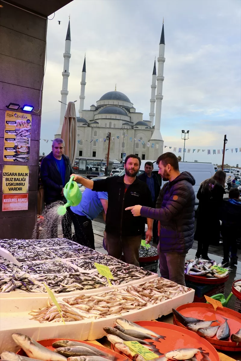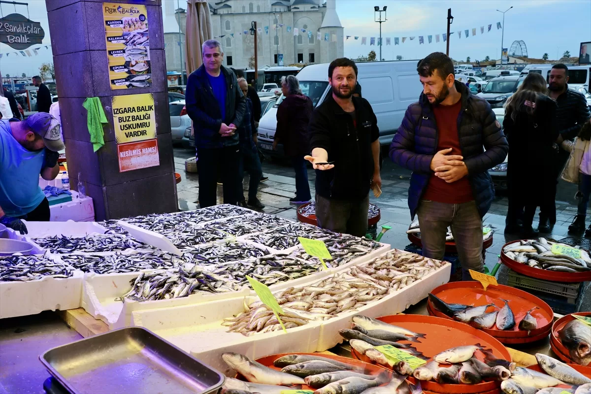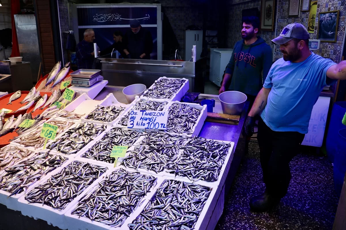 TRABZON (AA) – Trabzon'da balıkçı tezgahlarında hamsinin kilogramı 35 liradan satılıyor.