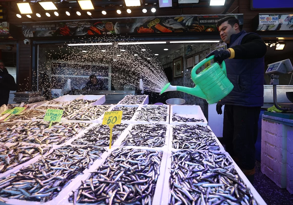 TRABZON (AA) – Trabzon'da, son günlerde mevsim normalleri üzerindeki hava sıcaklıklarına bağlı fiyatı yükselen hamsinin kilogramı 50 liradan satılıyor.