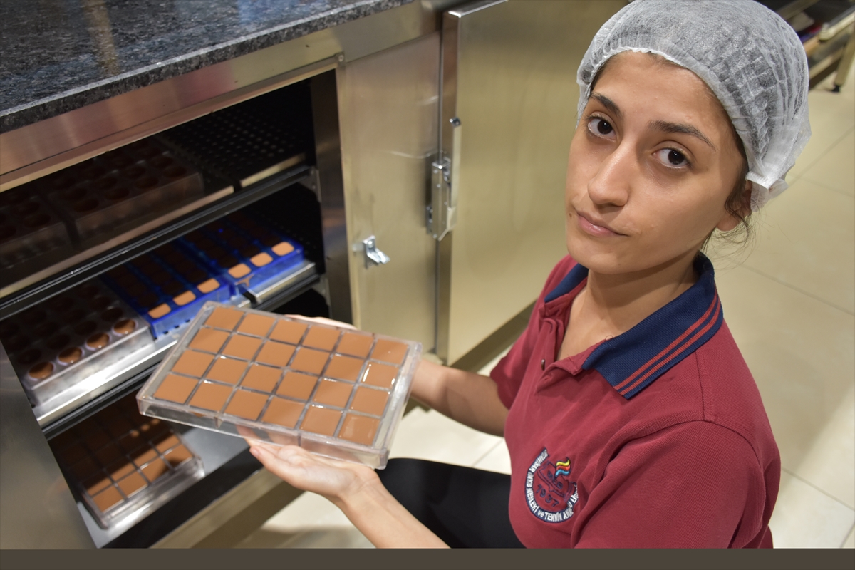 İş yerinde oluşturulan bölümde eğitmenler eşliğinde çeşitli ürünler hazırlayan öğrenciler, "Hisariçi" ismi verilen çikolataları hem paket olarak hem de kilogram usulü satışa sunuyor.