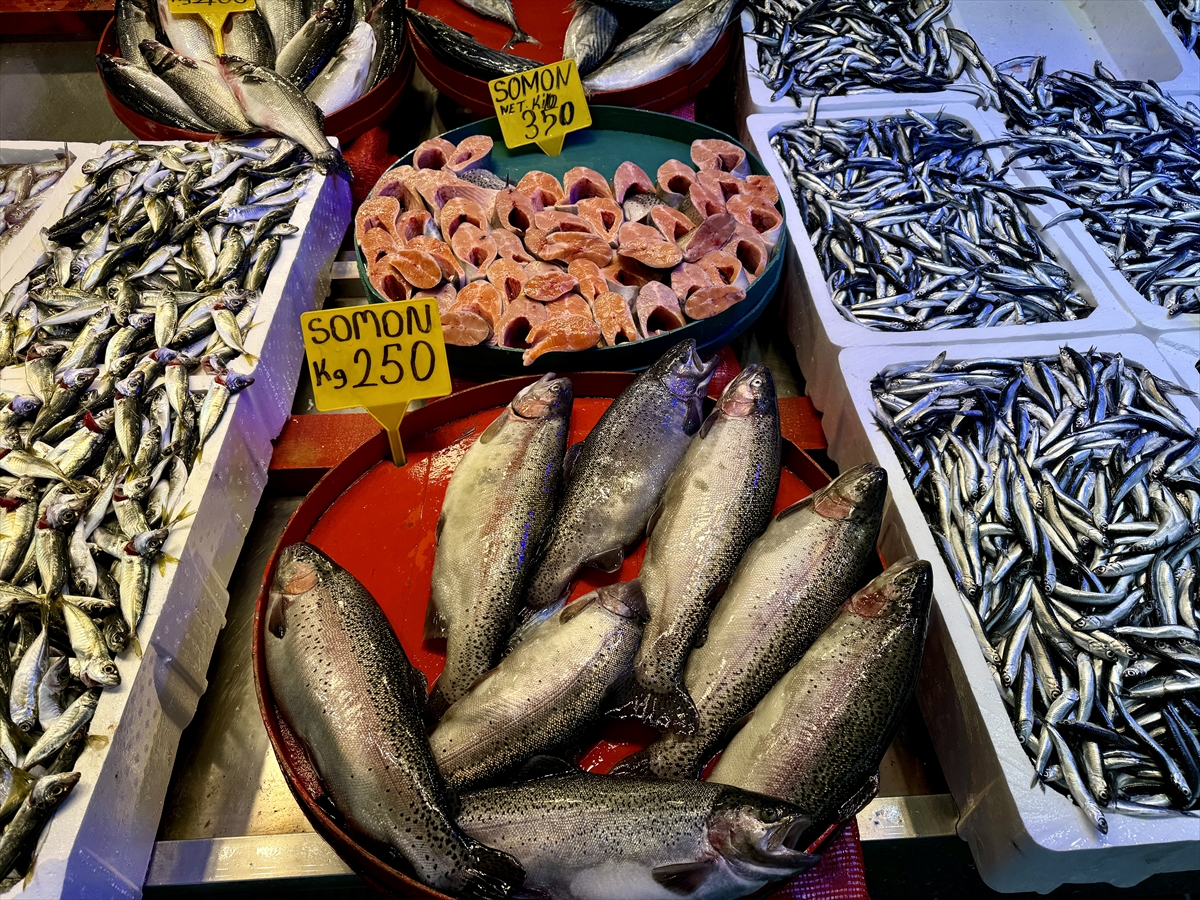 Mezgit ve istavrit kilogramı 150, somon 250, çipura, çinekop ve levrek 300, alabalık ve hamsi 200 liradan, palamudun ise tanesi 175 liradan satılıyor.