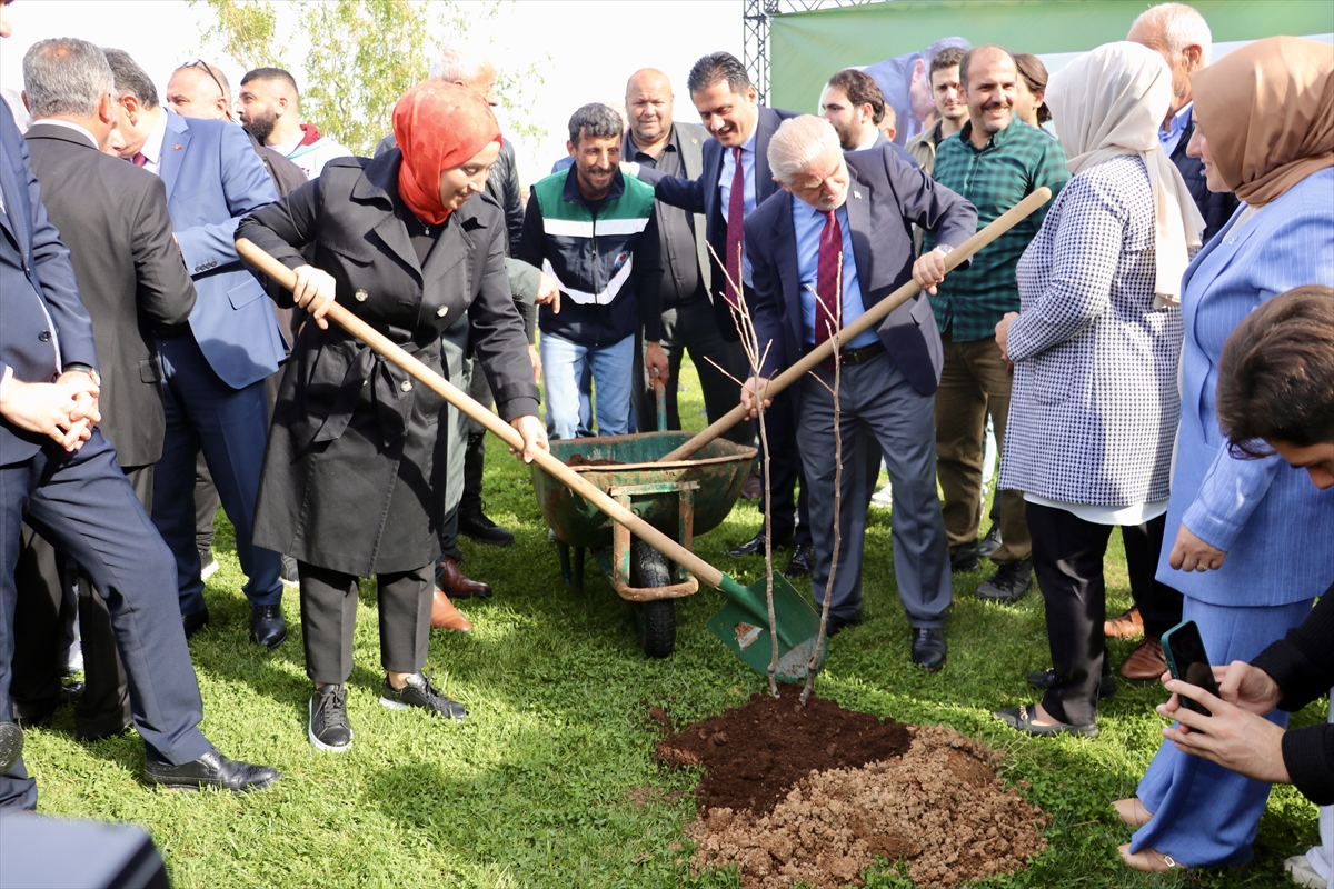Konuşmaların ardından üreticilere meyve fidanları dağıtıldı, şantiye alanına fidan dikildi.