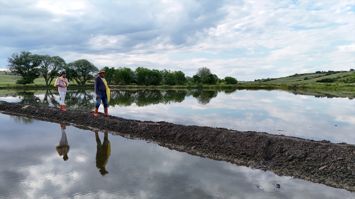 İki hafta önce ortalama 5'er dönüm olarak tarım alanlarının etrafını 30 santimetrelik toprakla çeviren çiftçiler, daha sonra bu alanları suyla doldurdu.