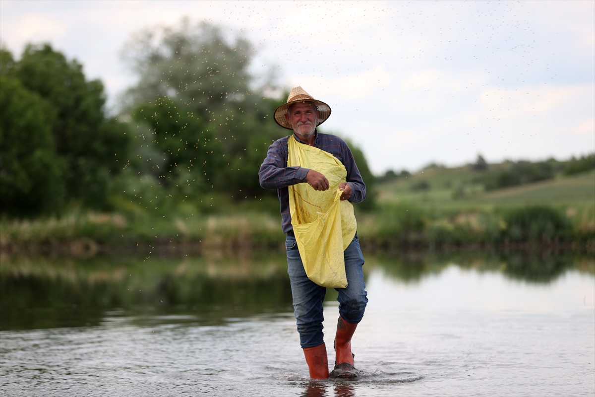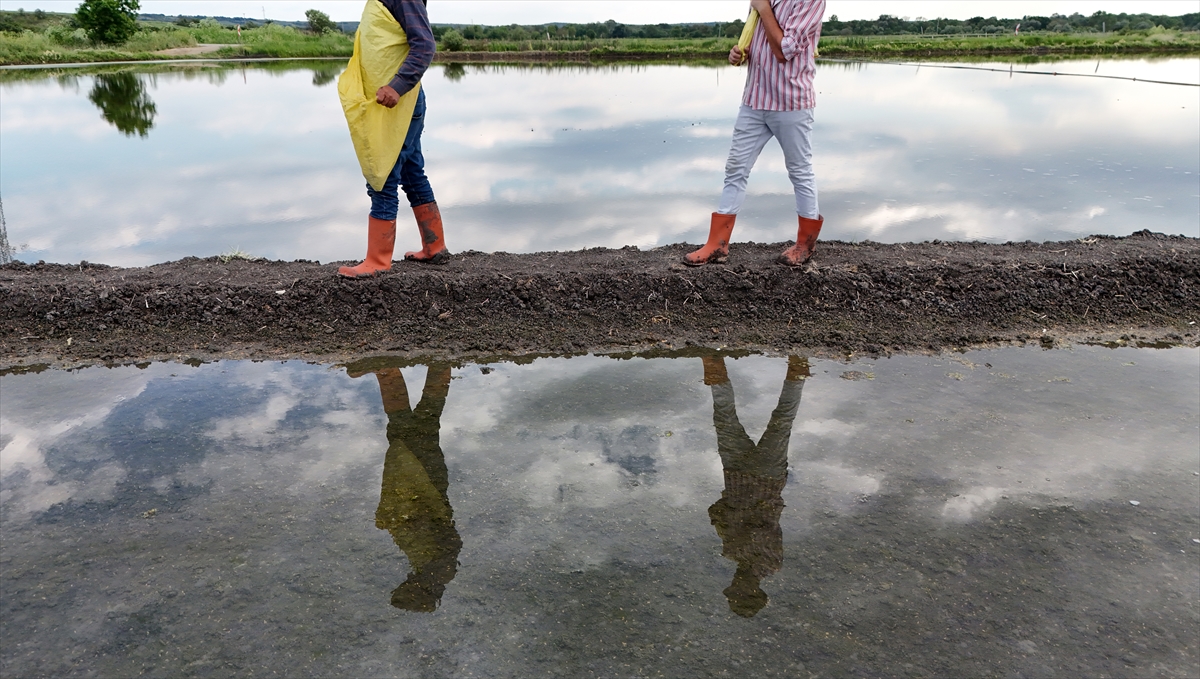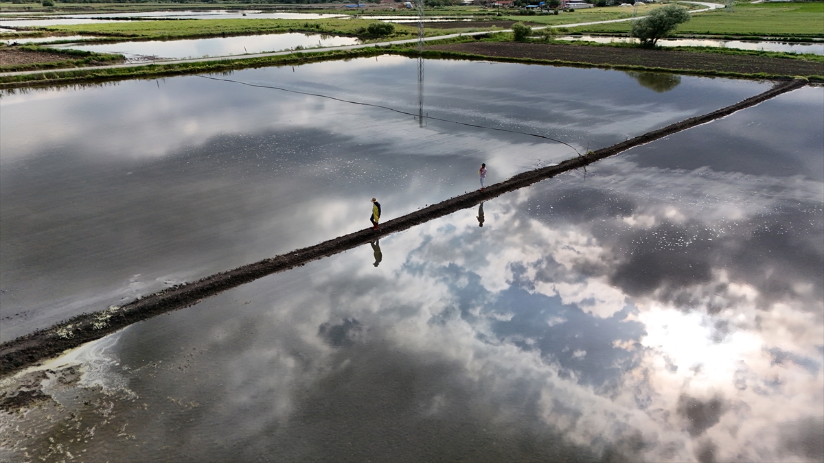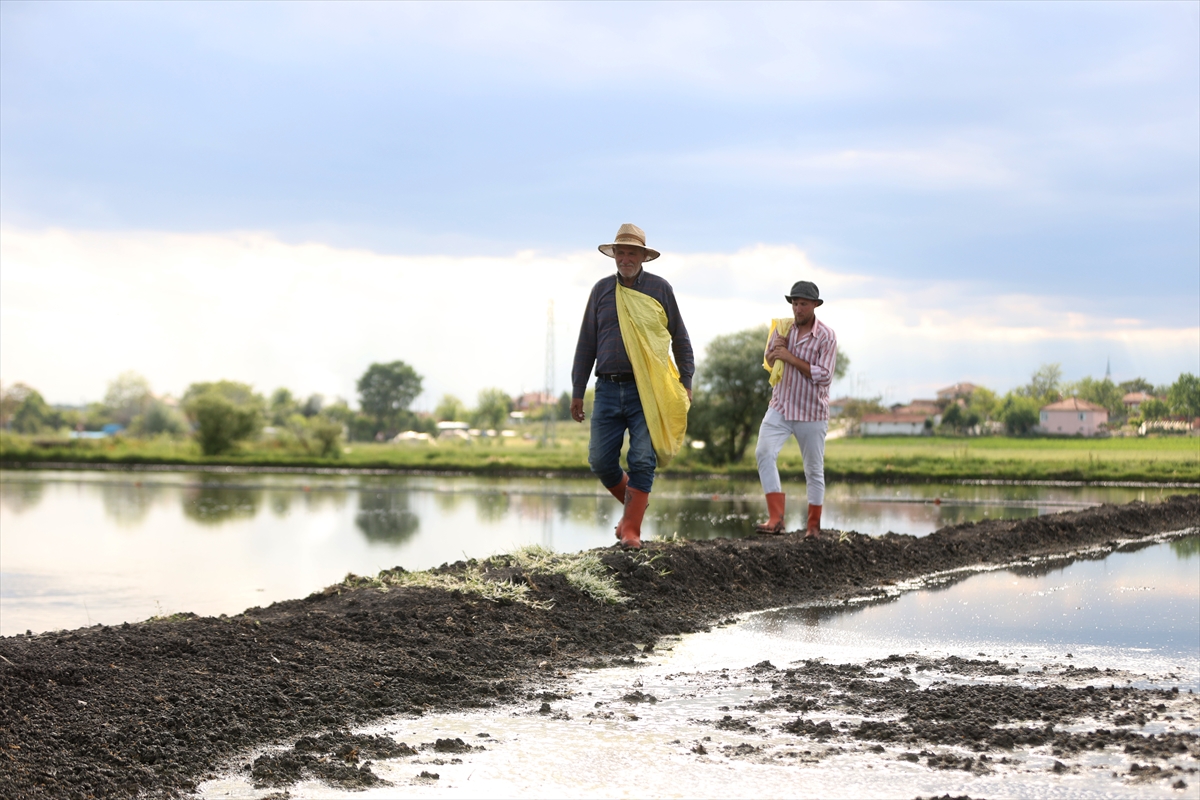 Nisan ayında hazırladıkları tarlaları bugünlerde çeltik tohumuyla buluşturduklarını anlatan Yalçın, "Elle ekiyoruz. Taşımacı var. Ben kendim ekiyorum bu yerleri. Biraz ağır geliyor ama alışığız biz. Ne kadar zor da gelse mecbursun bunu atmaya. Günde zaman geliyor 10 dekar, zaman geliyor 15 dekar, yere göre ekim yapıyoruz." diye konuştu.