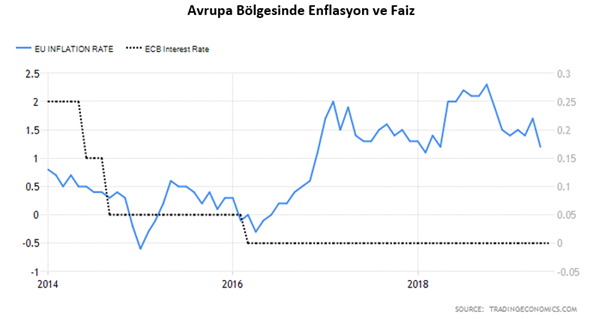 2016 yılının ilk aylarından bu yana faiz oranını “0” olarak sabit tutan Avrupa Merkez Bankası, yavaşlayan ekonomi ve en son %1.2 olarak açıklanan enflasyon ile faiz indirme kozunu büyük oranda kaybetmiş durumda.