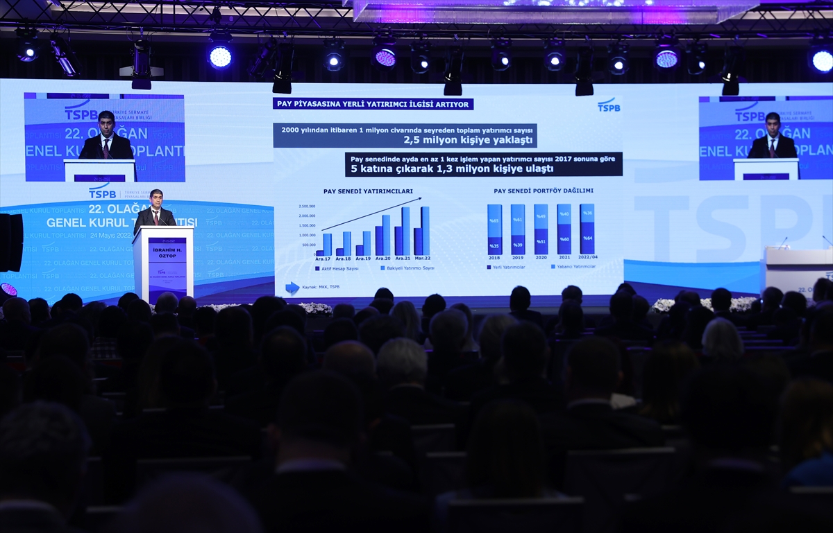 "Yerli yatırımcı ilgisinin son yıllarda ciddi şekilde artmasından büyük bir memnuniyet duyuyoruz. 2020 yılında başlayan ve 2021 yılında tarihi rekor seviyeleri yakalayan yerli yatırımcı ilgisi, bu yılın ilk 4 ayında da devam etti. Nisan sonu itibarıyla pay senedi bakiyeli yatırımcı sayısı 2,5 milyona ulaştı. Yerli yatırımcıların artan ilgisiyle halka açık piyasa değerinde yerli yatırımcılarımızın payı bu yılın nisan ayında yüzde 64'e kadar yükseldi. 2019 sonunda bu oran yüzde 39'du. Bu gelişmeye paralel olarak aynı dönemde yabancı yatırımcıların saklamadaki pay senetlerindeki payı yüzde 65'ten yüzde 36'ya indi. Sermaye piyasaları olarak artan yatırımcı ilgisiyle önemli bir fırsatı yakaladığımızı düşünüyorum. Piyasalarımızın arzuladığımız derinliğe ulaşması için bu fırsatı çok iyi değerlendirmek zorundayız. Nitekim ülkemizin genç nüfus yapısı, bize potansiyelin daha yüksek olduğunu gösteriyor.