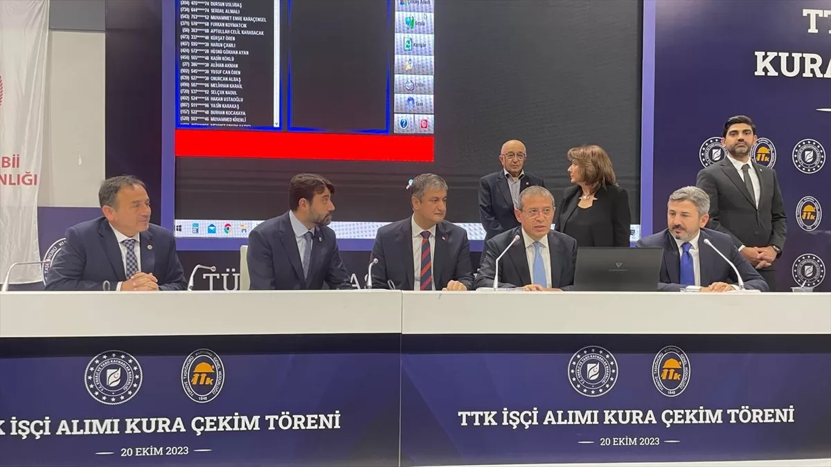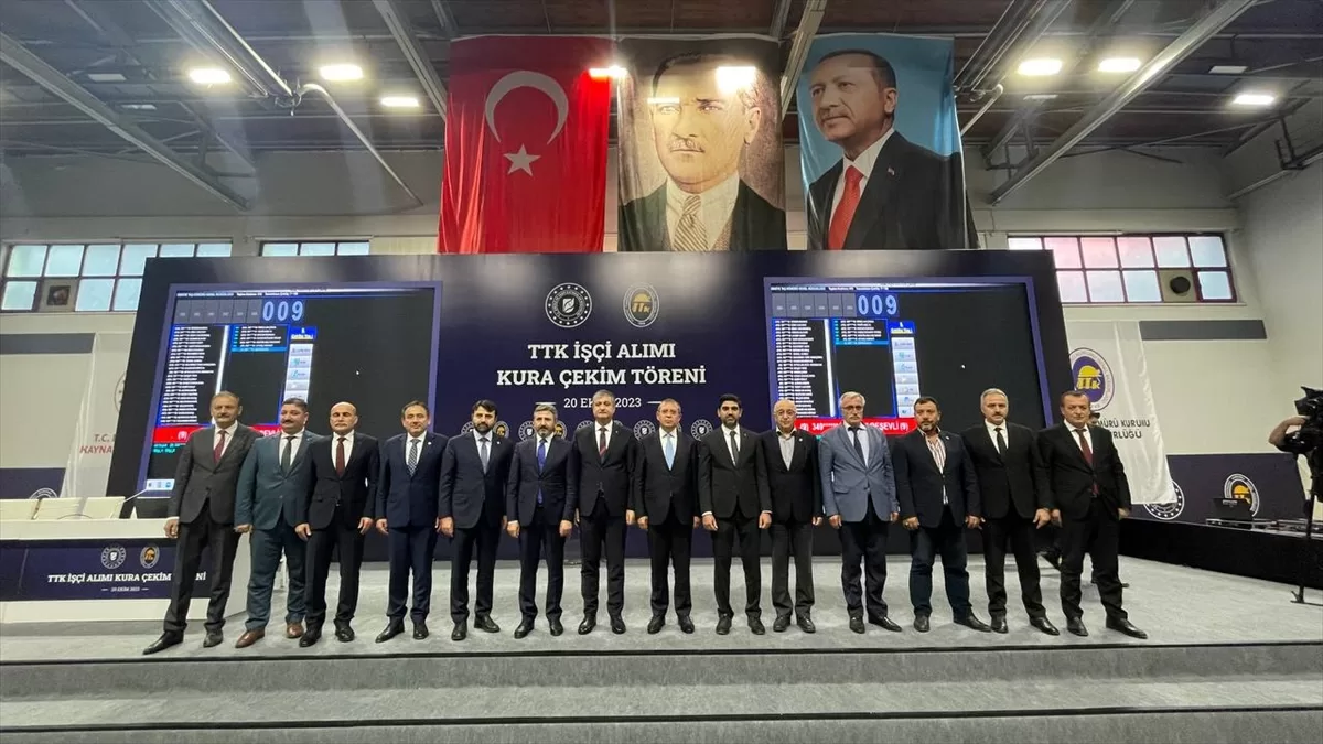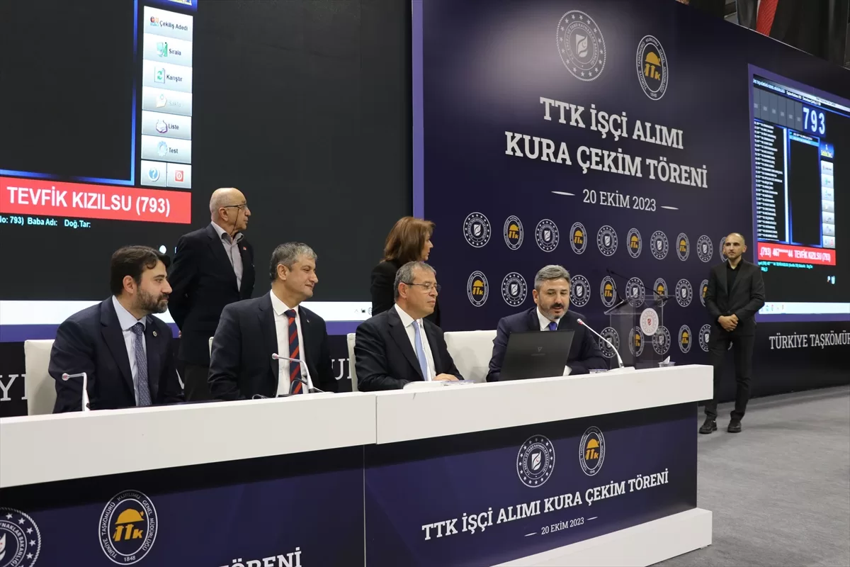 Tancan ile Çalışma ve Sosyal Güvenlik Bakan Yardımcısı Ahmet Aydın, Türkiye Taşkömürü Kurumu (TTK) Genel Müdürlüğüne alınacak 100 yer altı "pano-ayak üretim işçisi" kura çekim törenine katıldı.