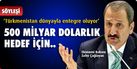 Son beş yıllık süreçte ticaret hacminin 5 kat arttığına dikkat çeken çağlayan, vizelerin kaldırılması için birtakım girişimlerde bulunduklarını ve bu talebin gerçekleşmesi halinde ekonomik ilişkilerin daha da yukarılara tırmanacağını ifade ediyor. İşte 500 milyar dolarlık ihracat hedefini gerçekleştirmek için dünyayı karış karşı gezen Ekonomi Bakanı Zafer çağlayan’ın, Türkiye-Türkmenistan hakkında sorduğumuz sorulara verdiği yanıtlar ve özel röportajın ayrıntıları: