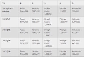 RUSYA, ALMANYA, BİRLEŞİK KRALLIK VE POLONYA İLK DÖRTTEKİ YERİNİ KAPTIRMADI