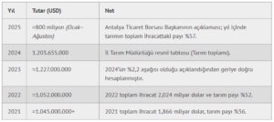 Kaynak: 2023–2024 rakamları İl Tarım Müdürlüğü’nden, 2022–2021 ise il toplam ihracat ve tarım payı beyanlarından alınmıştır.