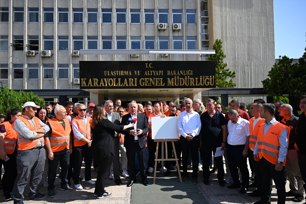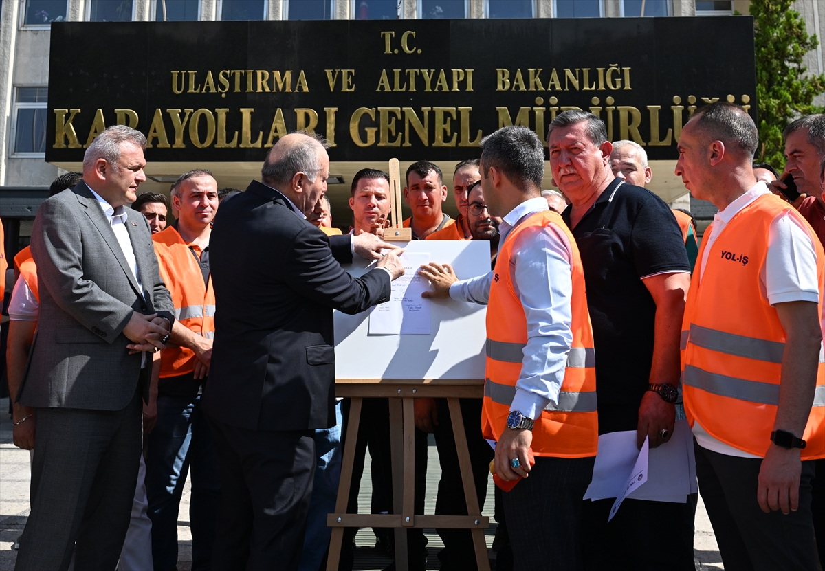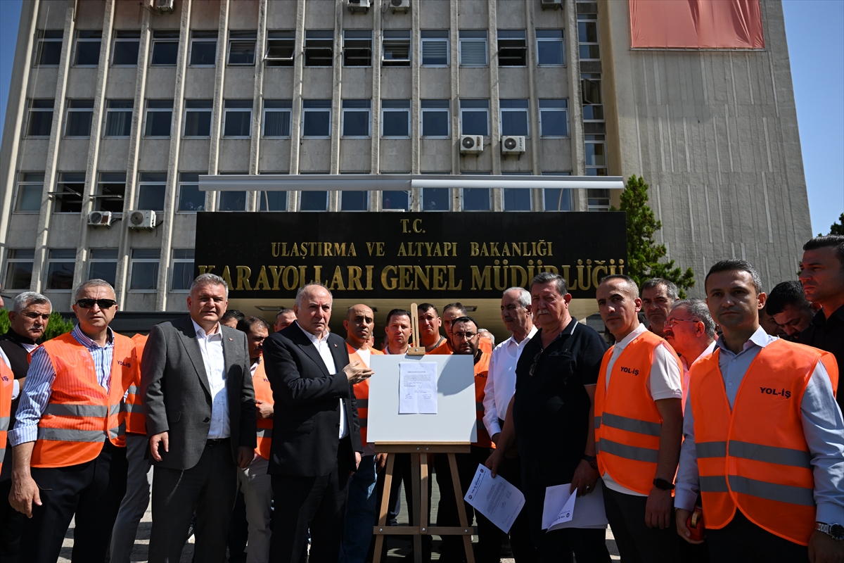 Türkiye İşçi Sendikaları Konfederasyonuna (TÜRK-İŞ) bağlı Yol-İş Sendikası üyesi işçiler, Karayolları Genel Müdürlüğü önünde bir araya geldi.