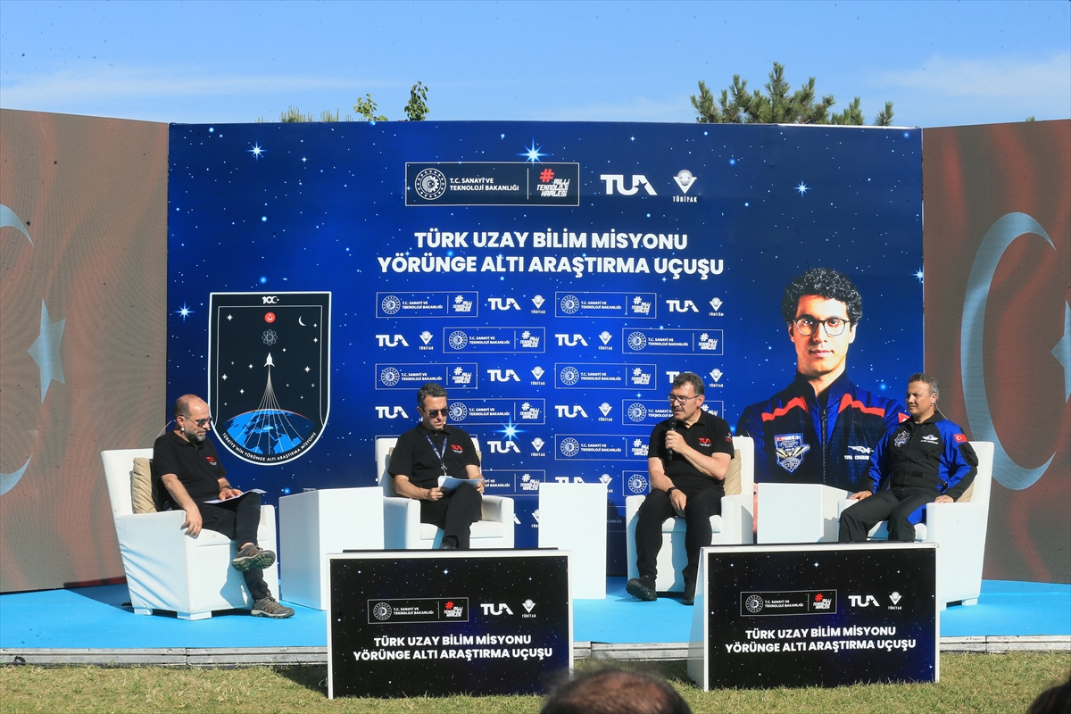 Sanayi ve Teknoloji Bakanı Mehmet Fatih Kacır, Türkiye Bilimsel ve Teknolojik Araştırma Kurumu (TÜBİTAK) Başkanı Prof. Dr. Hasan Mandal, Türkiye'nin ilk astronotu Alper Gezeravcı, Türkiye Uzay Ajansı (TUA) Başkanı Yusuf Kıraç, TÜBİTAK UZAY İş Geliştirme Grup Lideri Sadık Murat Yüksel ve İş Geliştirme Grubu’ndan Can Bayraktar TÜBİTAK Gebze Yerleşkesi'nde düzenlenen söyleşiyle, Tuva Cihangir Atasever’in uçuşunu canlı olarak aktardı.