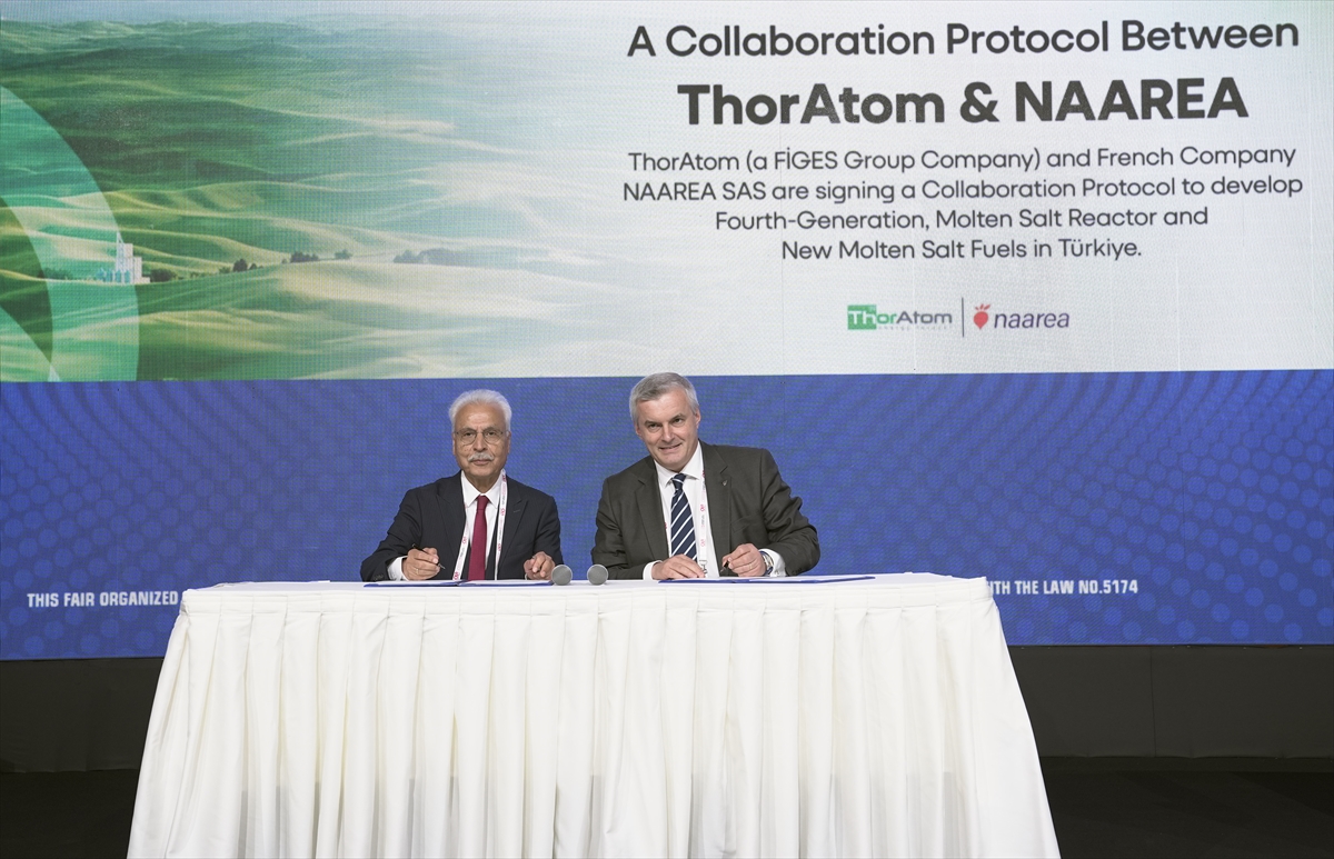 Temiz, güvenilir ve ölçeklenebilir yeni nesil nükleer enerji çözümlerinin yaygınlaştırılması açısından stratejik adım olarak öne çıkan anlaşma, ThorAtom'un bağlı bulunduğu FİGES Grubu Yönetim Kurulu Başkanı Tarık Öğüt ve NAAREA Üst Yöneticisi (CEO) Jean-Luc Alexandre'nin katılımıyla gerçekleştirildi.